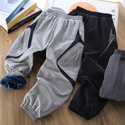 男童加绒冲锋裤防风保暖工装裤儿童休闲裤子秋冬款中大童加厚长裤
