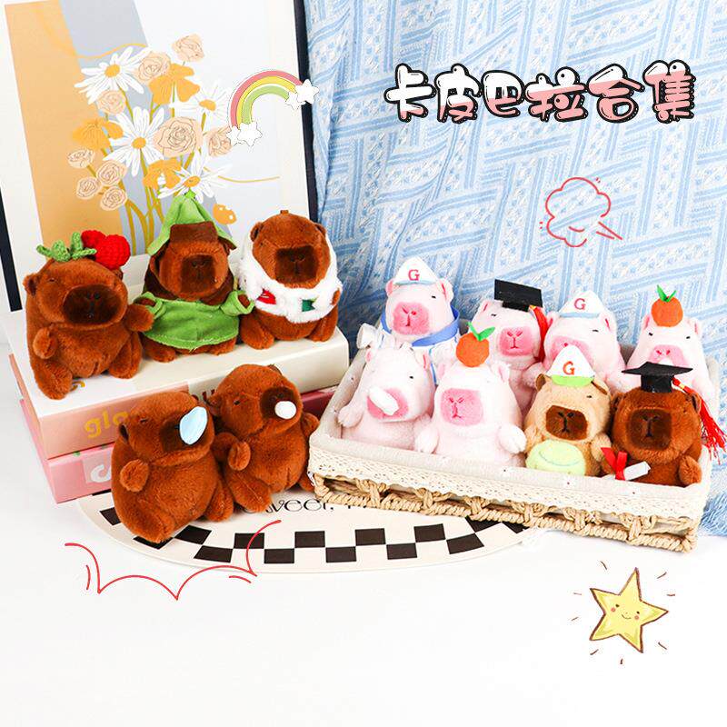 卡皮巴拉钥匙扣挂件创意毛绒水豚公仔书包包挂饰玩偶抓机娃娃