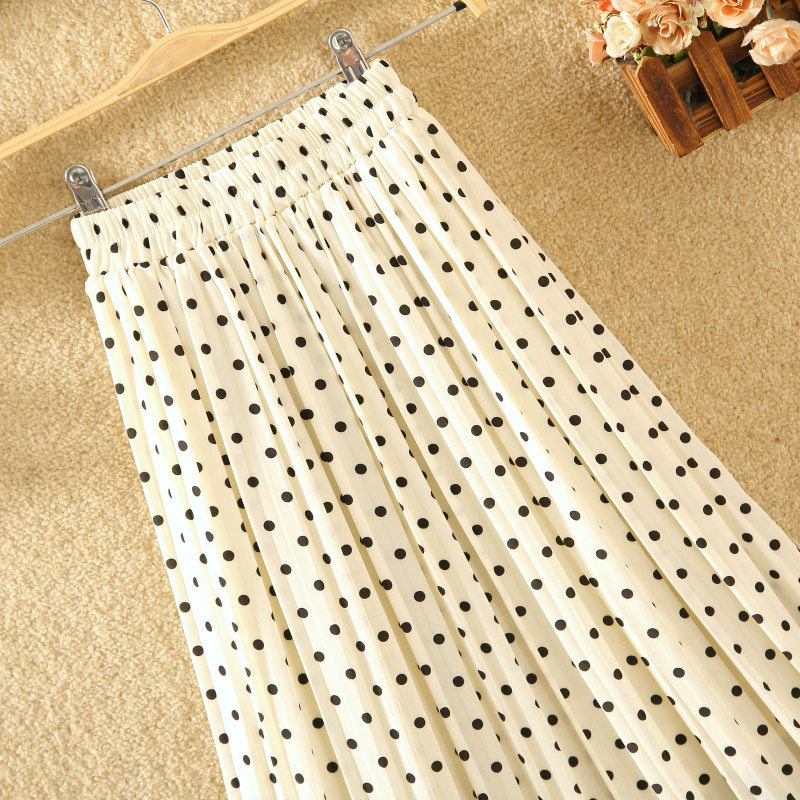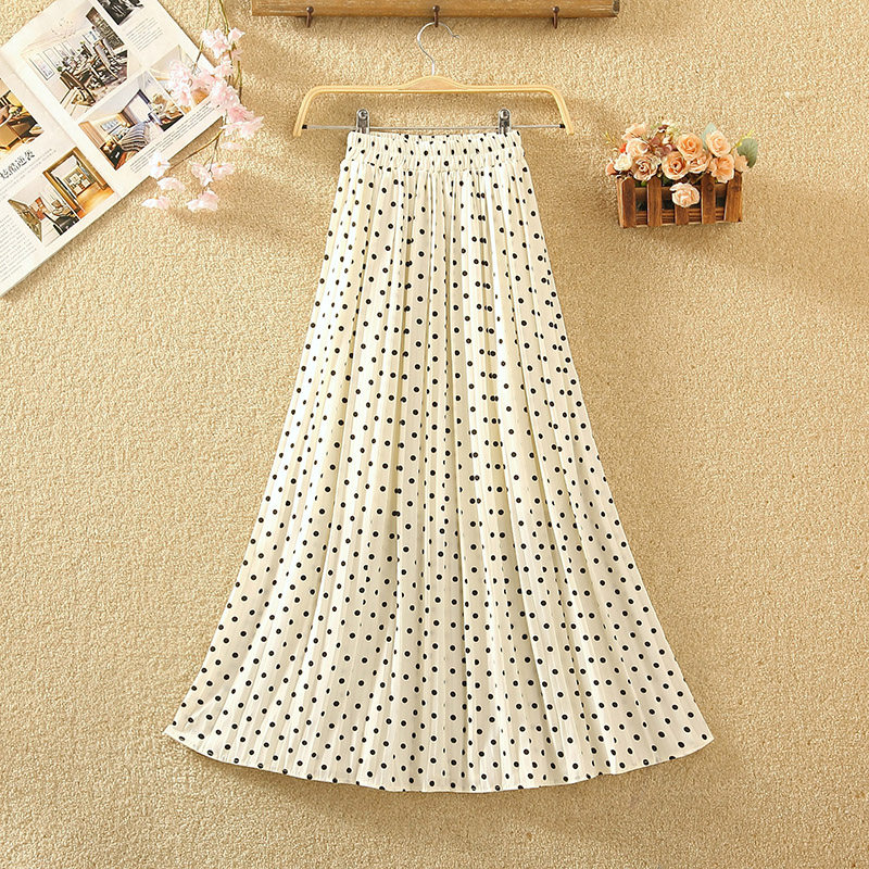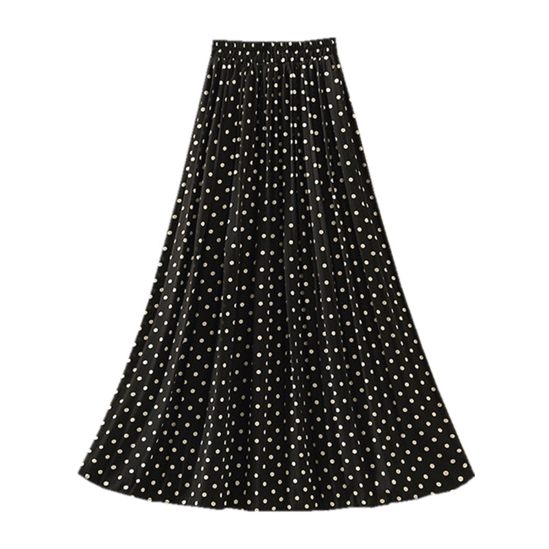 波点裙百褶裙雪纺半身裙女春夏新款裙子垂感显瘦长裙纱a字沙滩裙