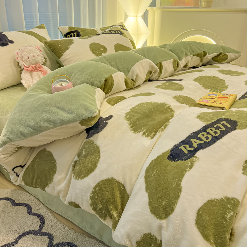 牛奶绒床上四件套冬季加绒加厚双面珊瑚绒被套法兰绒床单床上用品