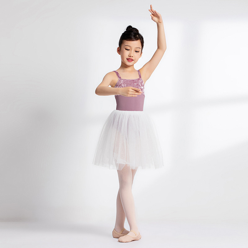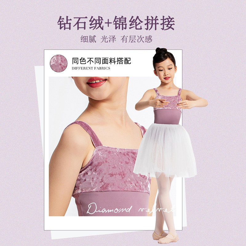 sansha 法国三沙舞蹈服儿童女 钻石绒芭蕾舞服宽吊带连体服开裆