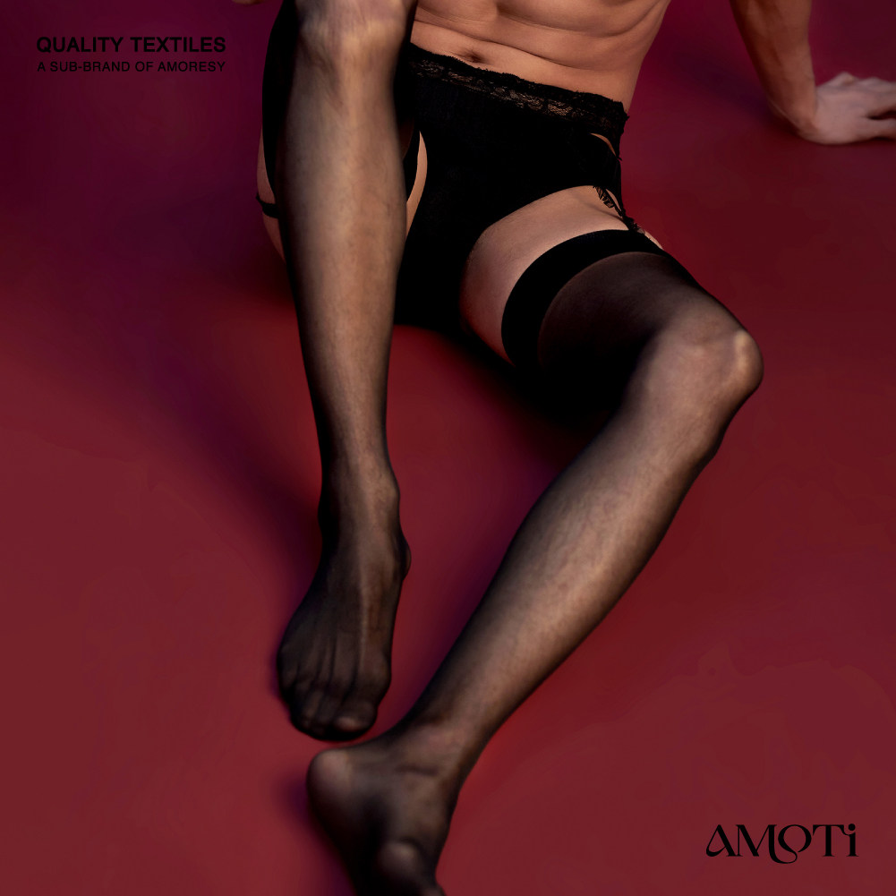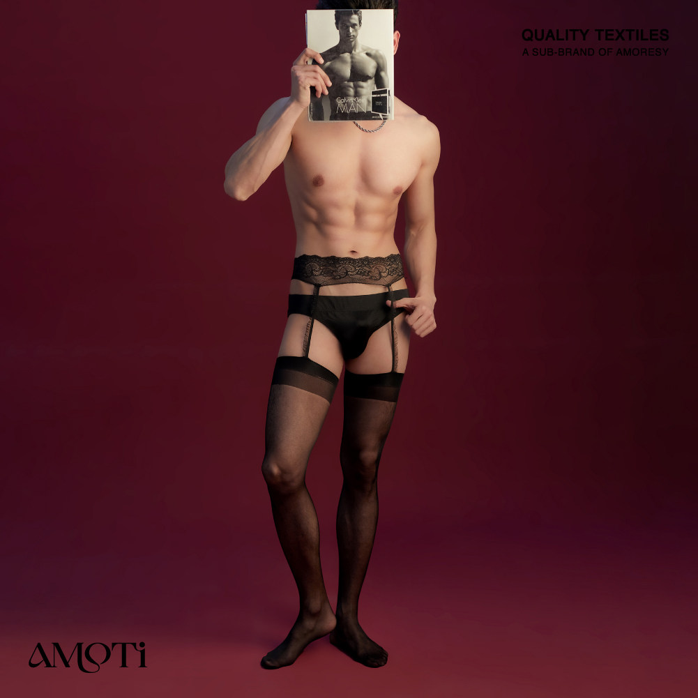 AMOTi 缇 心灵感触-缟 [风范]男士蕾丝吊带长筒黑色高透大腿丝袜