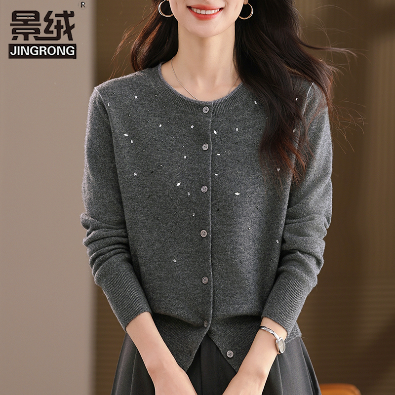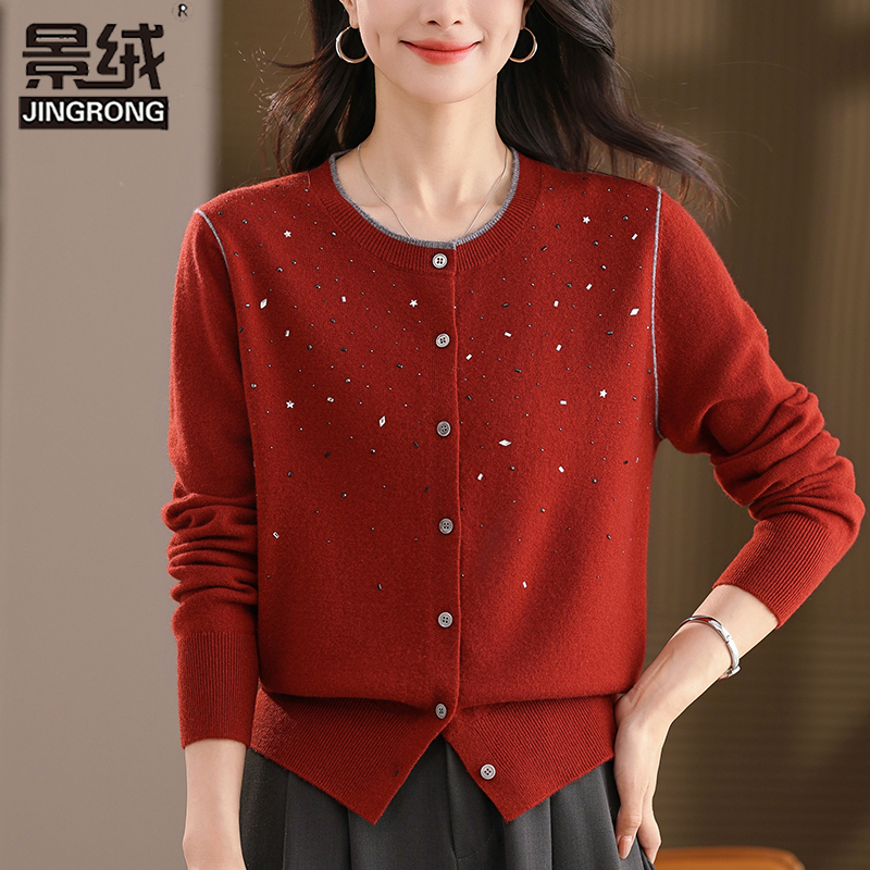 高端羊毛开衫女士秋冬季新款宽松中年妈妈羊绒毛衣外套打底针织衫