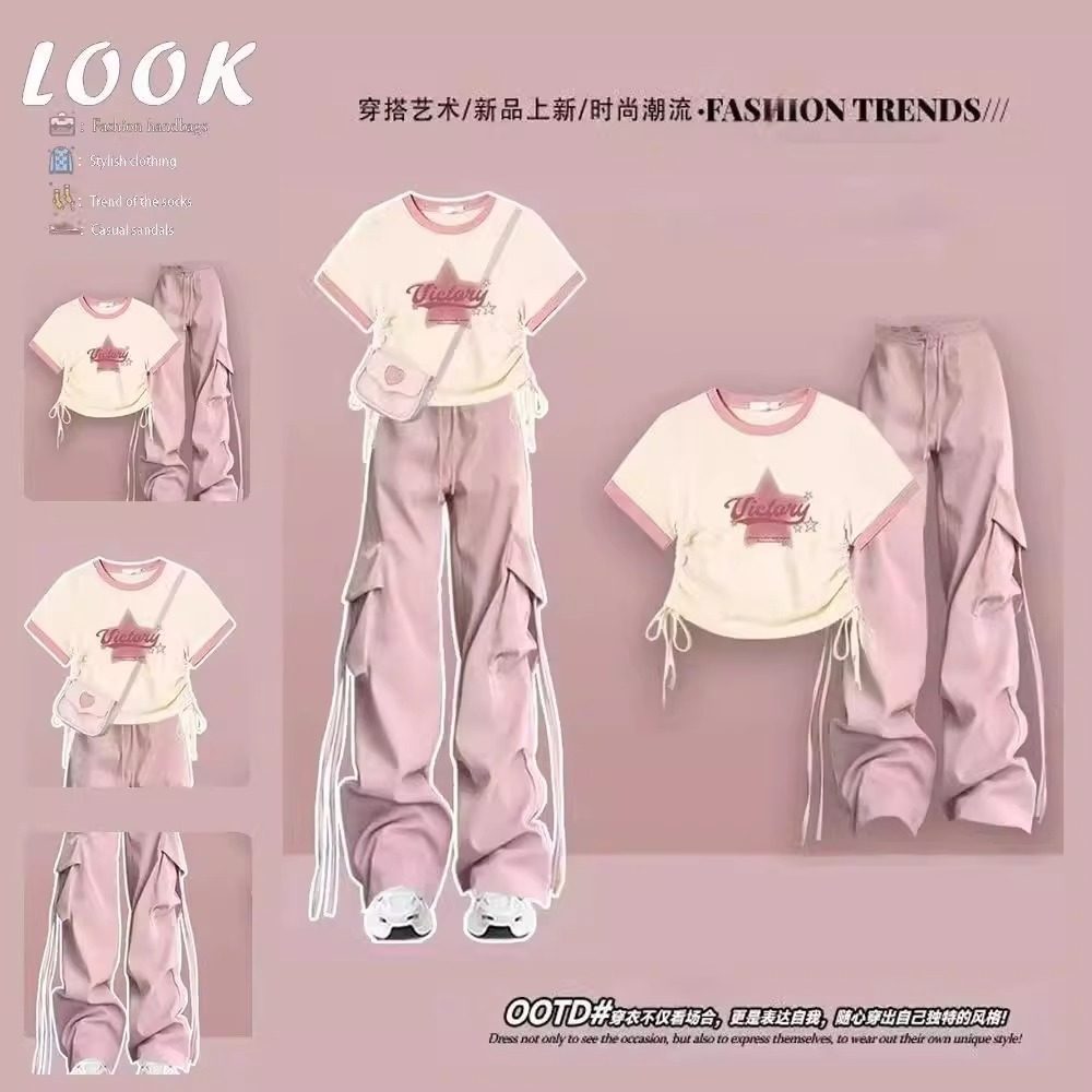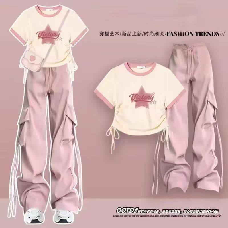 女童夏装套装2025新款12岁13中大童5学生夏季短袖t恤洋气工装裤潮