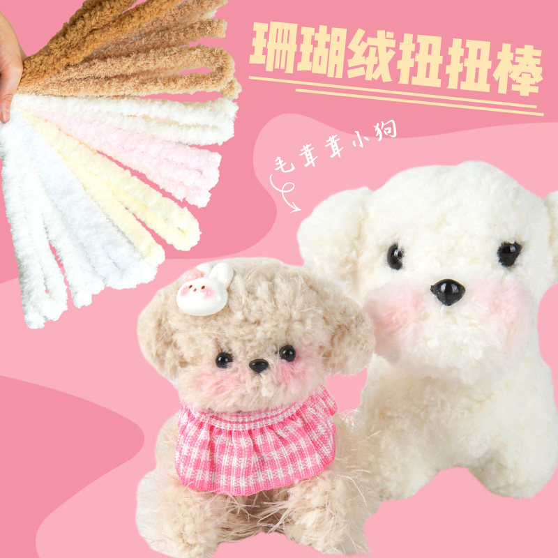 15mm扭扭棒毛绒线超密超粗毛根手工diy毛条小狗猫咪网红玩偶材料