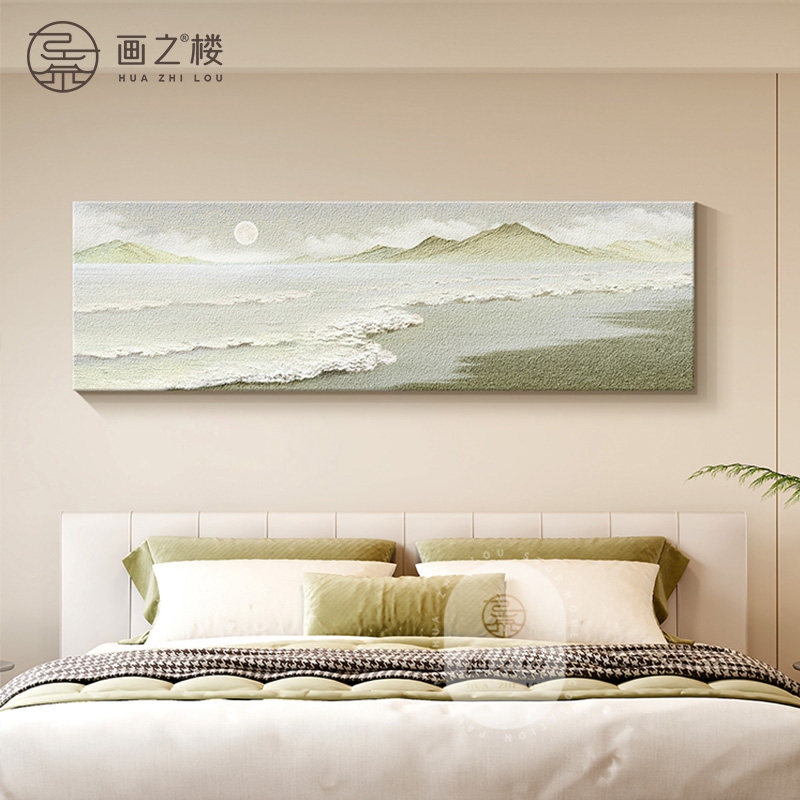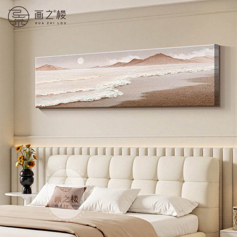 海上日出卧室装饰画海浪肌理感砂岩画夫妻主卧床头挂画高级感壁画