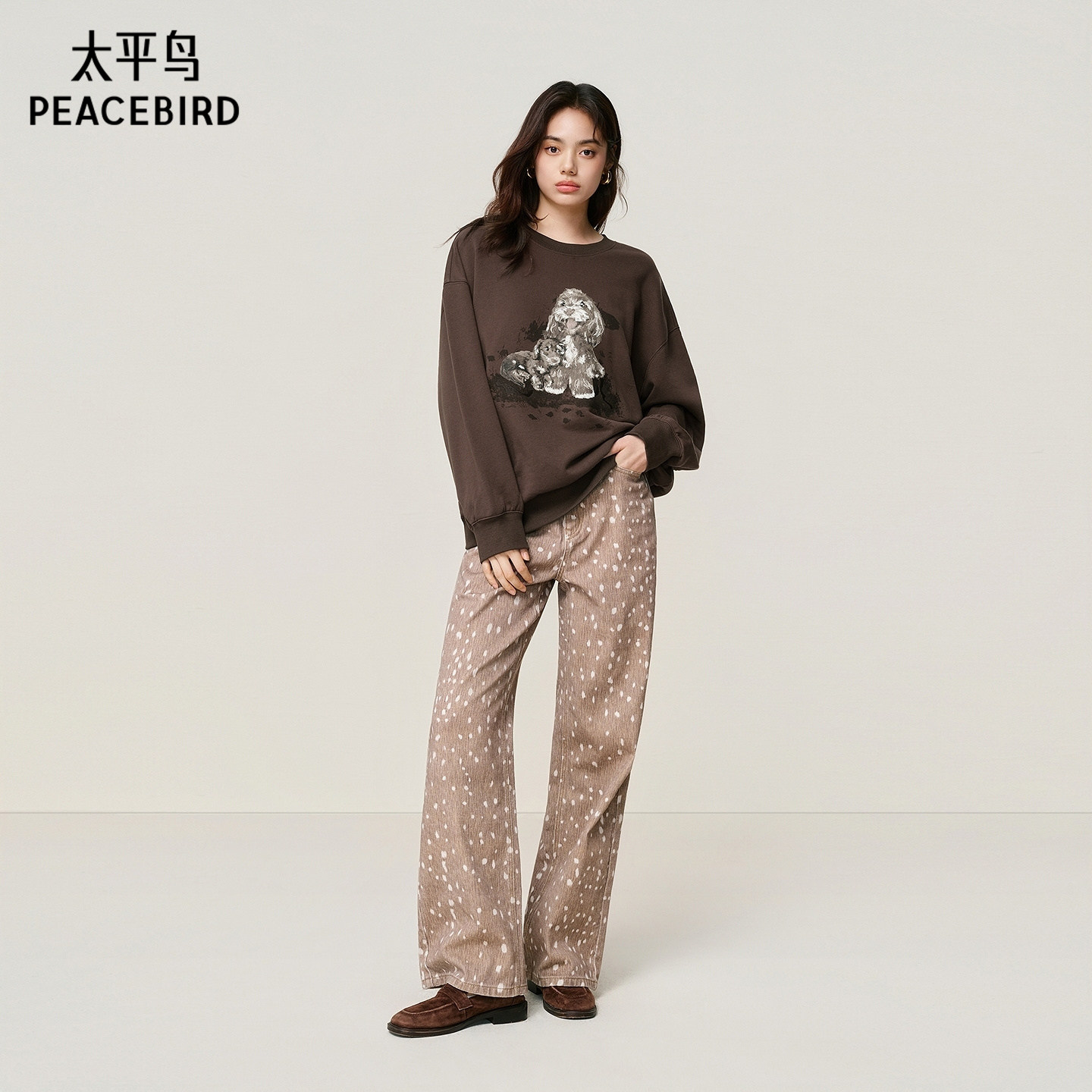 【商场同款】太平鸟冬季新款圆领宽松套头小狗图案卫衣A3CRF4470