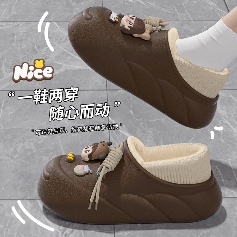 包跟DIY棉拖鞋女款冬季新款防水加绒保暖甜美外穿防滑卡通棉鞋女