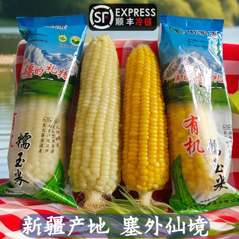 非转基因田园康有机黄糯玉米顺丰白玉米新疆新鲜速冻黄苞米棒香甜