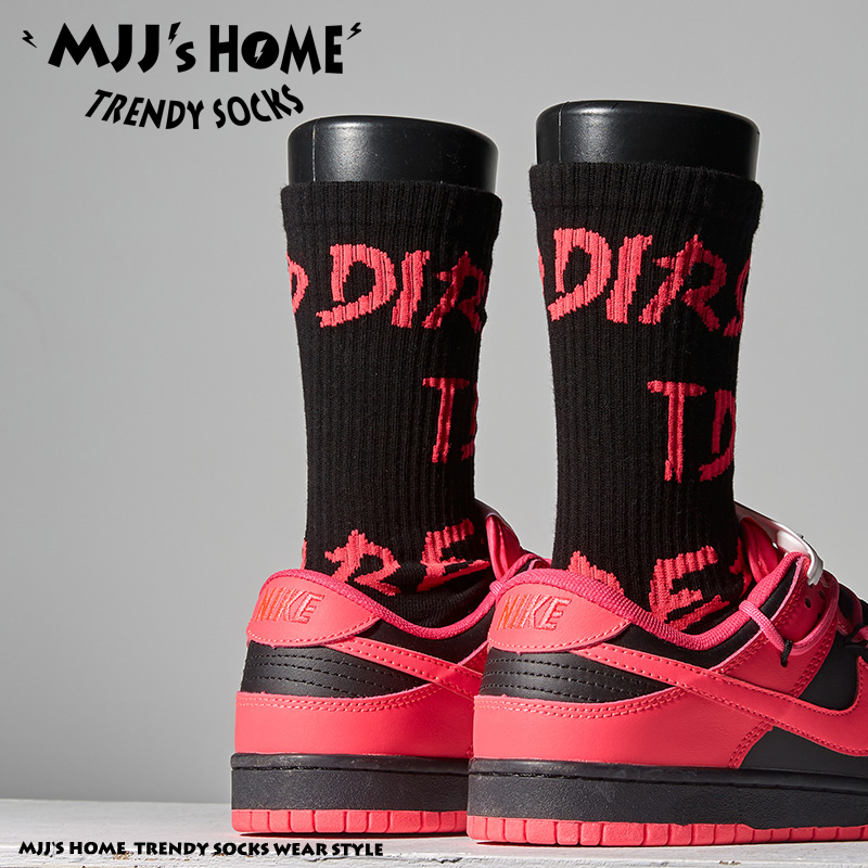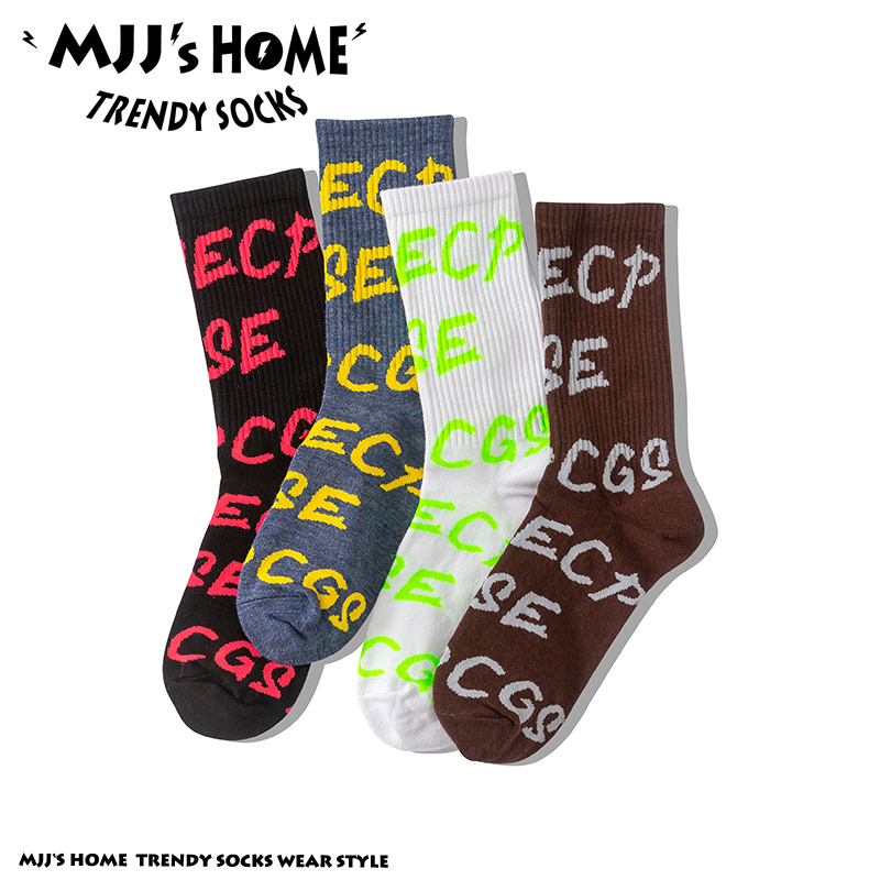 潮牌字母袜子男款长袜秋冬季玫红色中筒袜女潮纯棉男士篮球运动袜