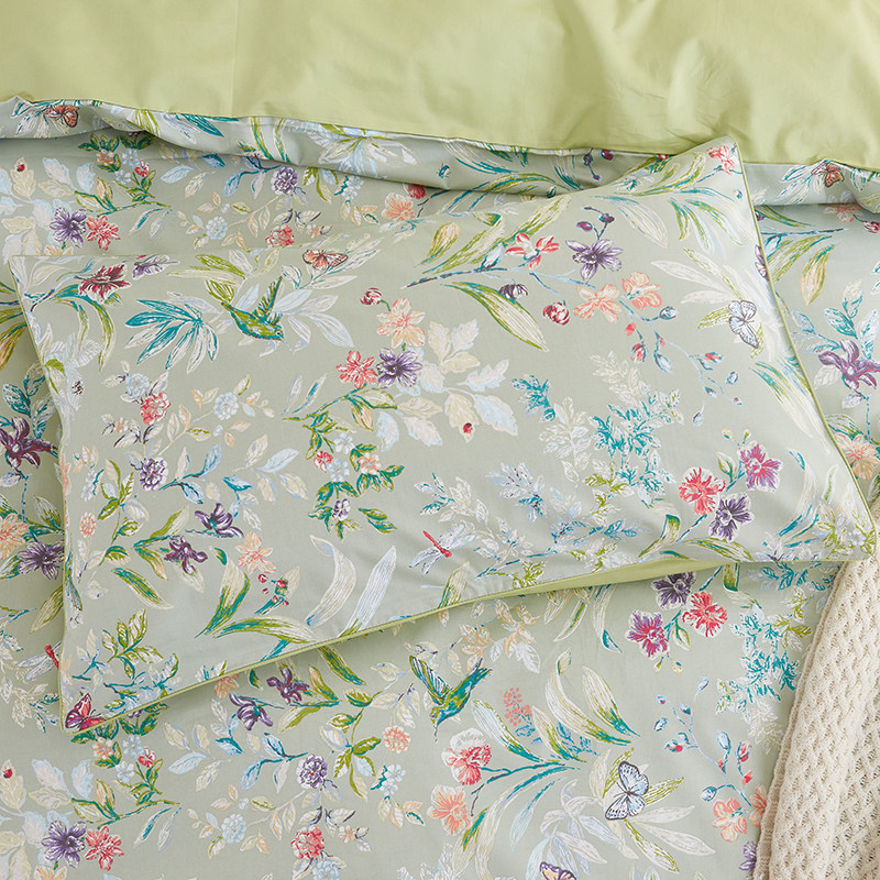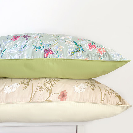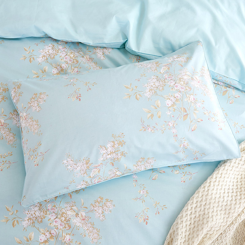田园印花60支纯棉贡缎枕套单人枕巾全棉亲肤枕头套外贸一对装包邮