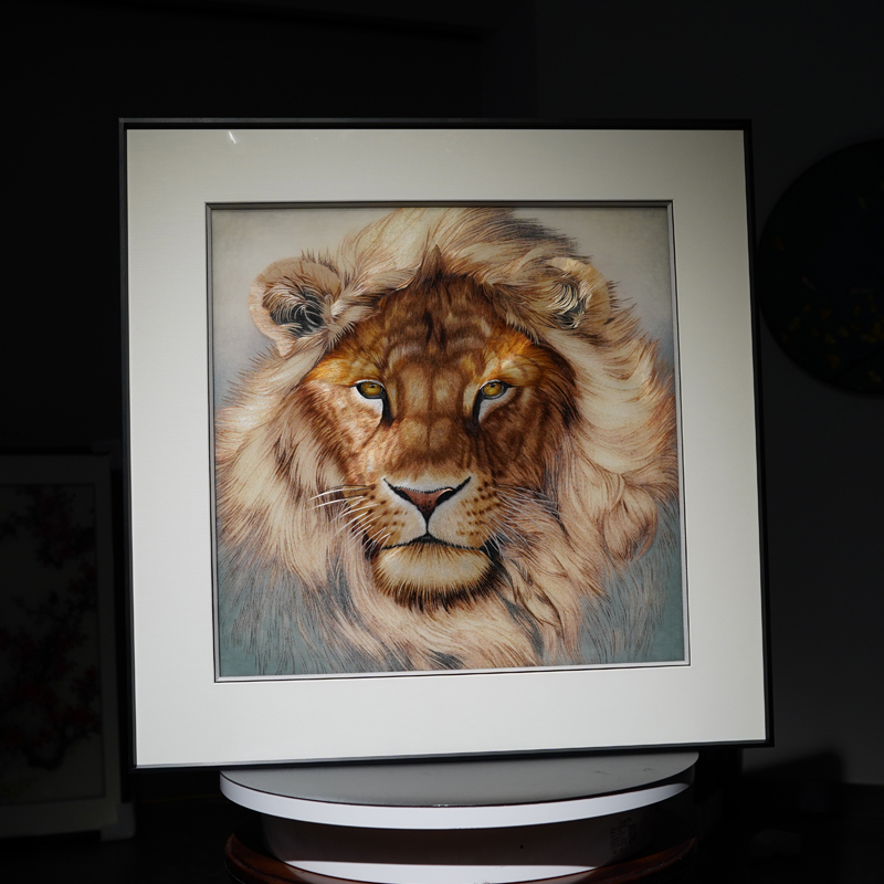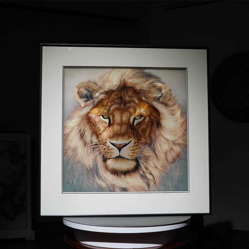 刺绣挂画苏绣成品挂画客厅玄关沙发背景墙纯手工狮子免打孔装饰画