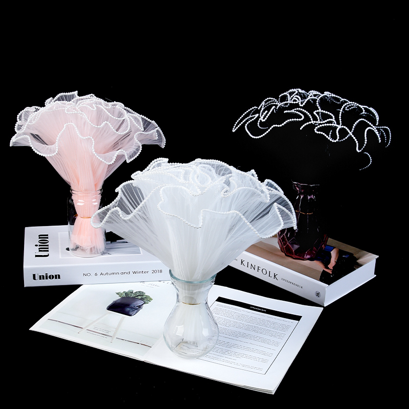 珍珠波浪纱浪花纱鲜花包装纸花束包花材料内衬玫瑰花白色网纱花艺
