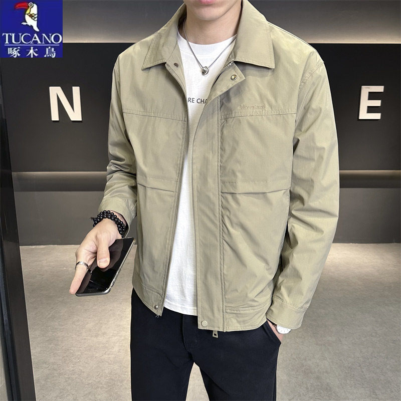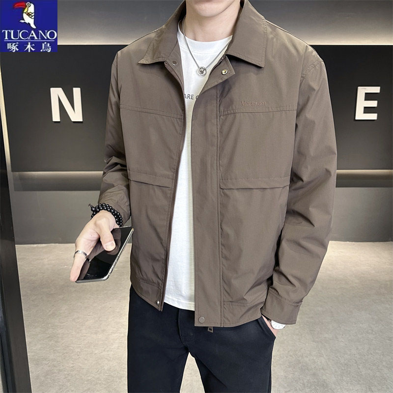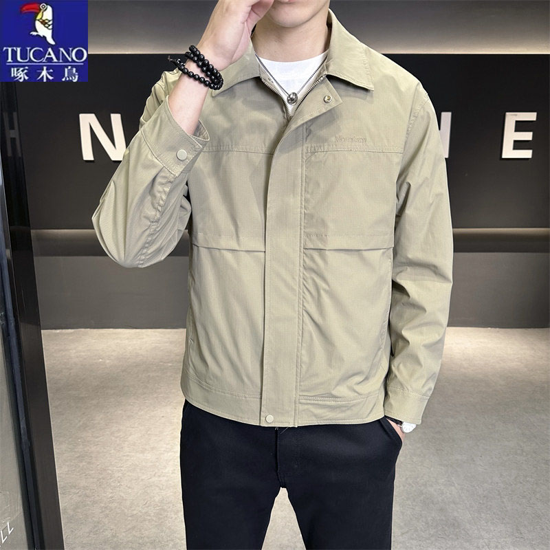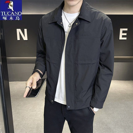 啄木鸟男士外套春秋季新款翻领帅气工装夹克百搭时尚潮流上衣褂子