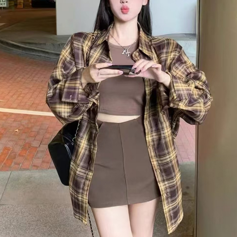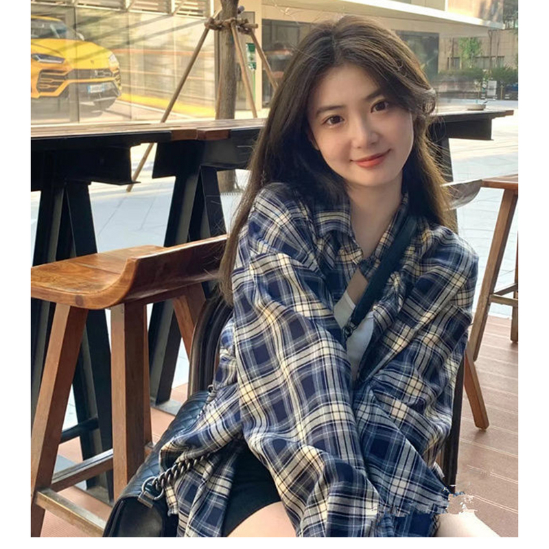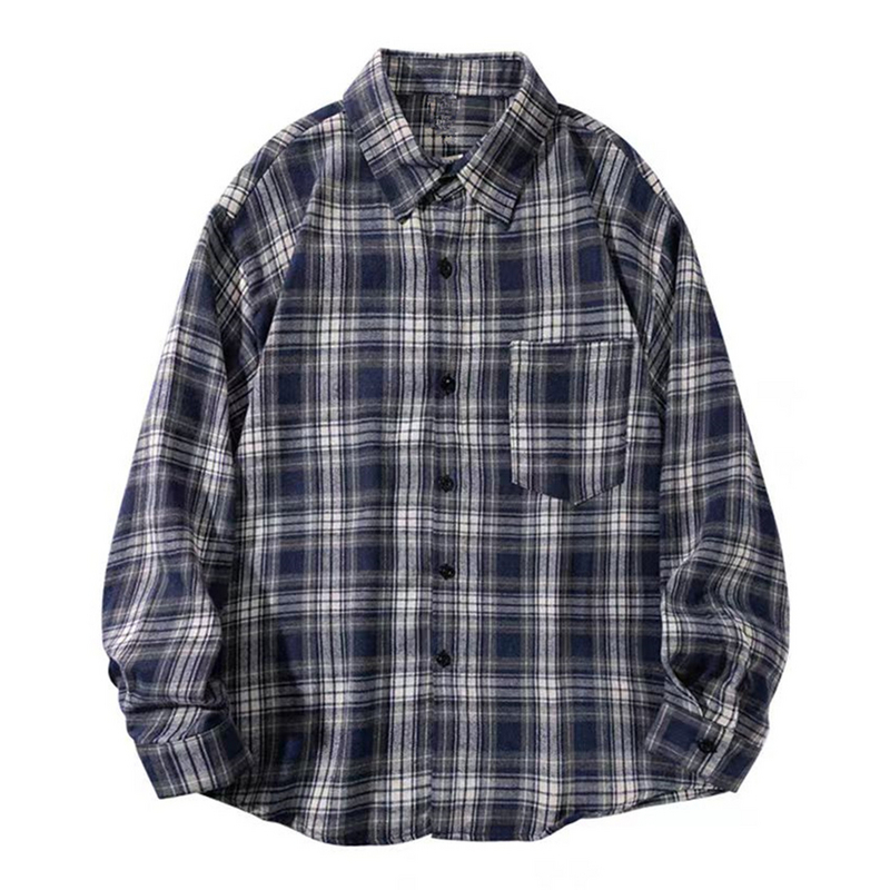 LE真维斯女装2025秋季新款美式复古格子百搭翻领长袖衬衫上衣女
