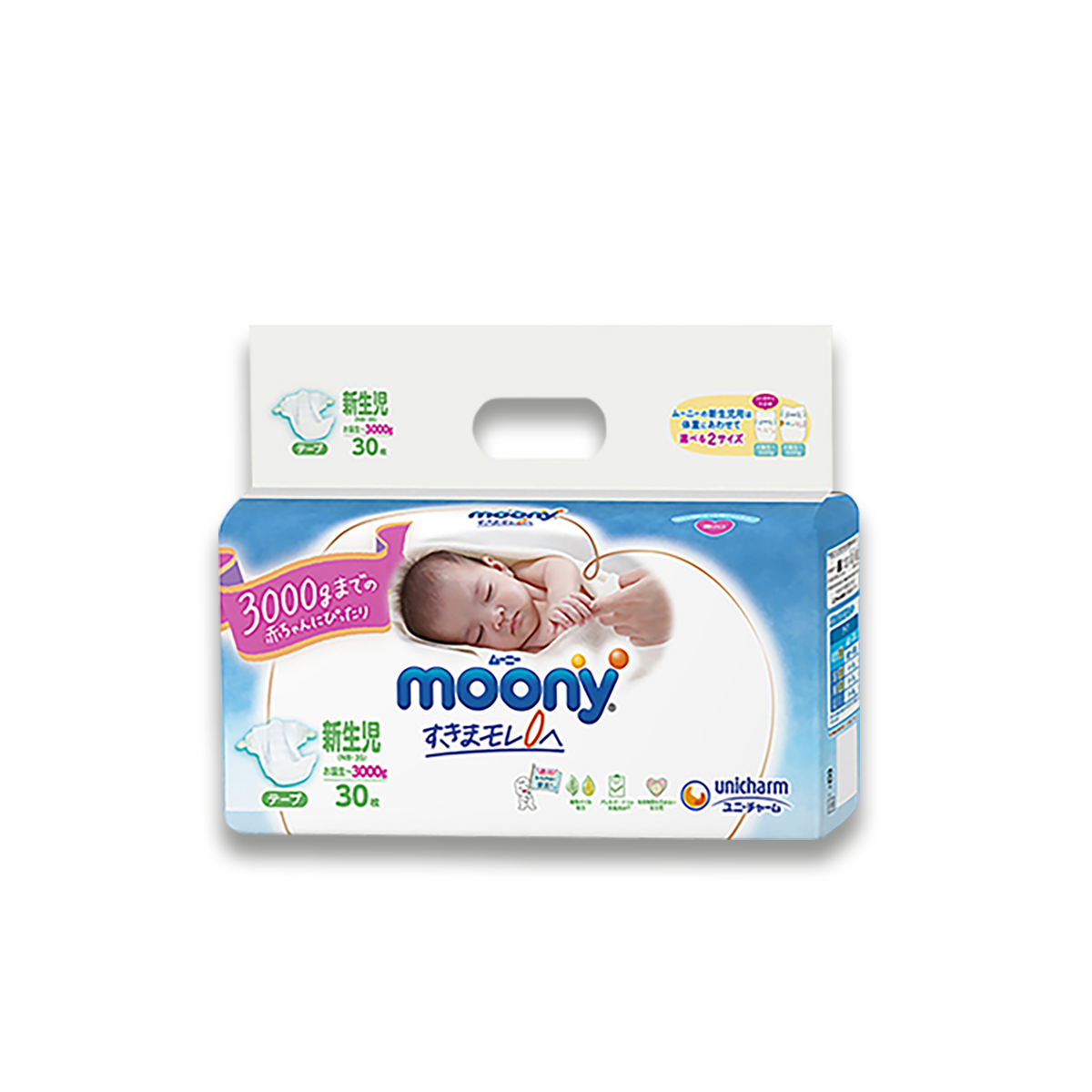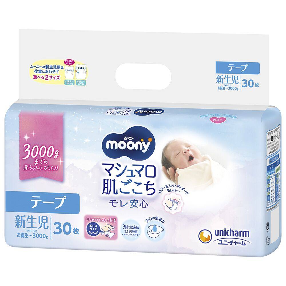 官方尤妮佳Moony新生儿低体重3S早产儿专用0-3kg纸尿裤NB30*2通用