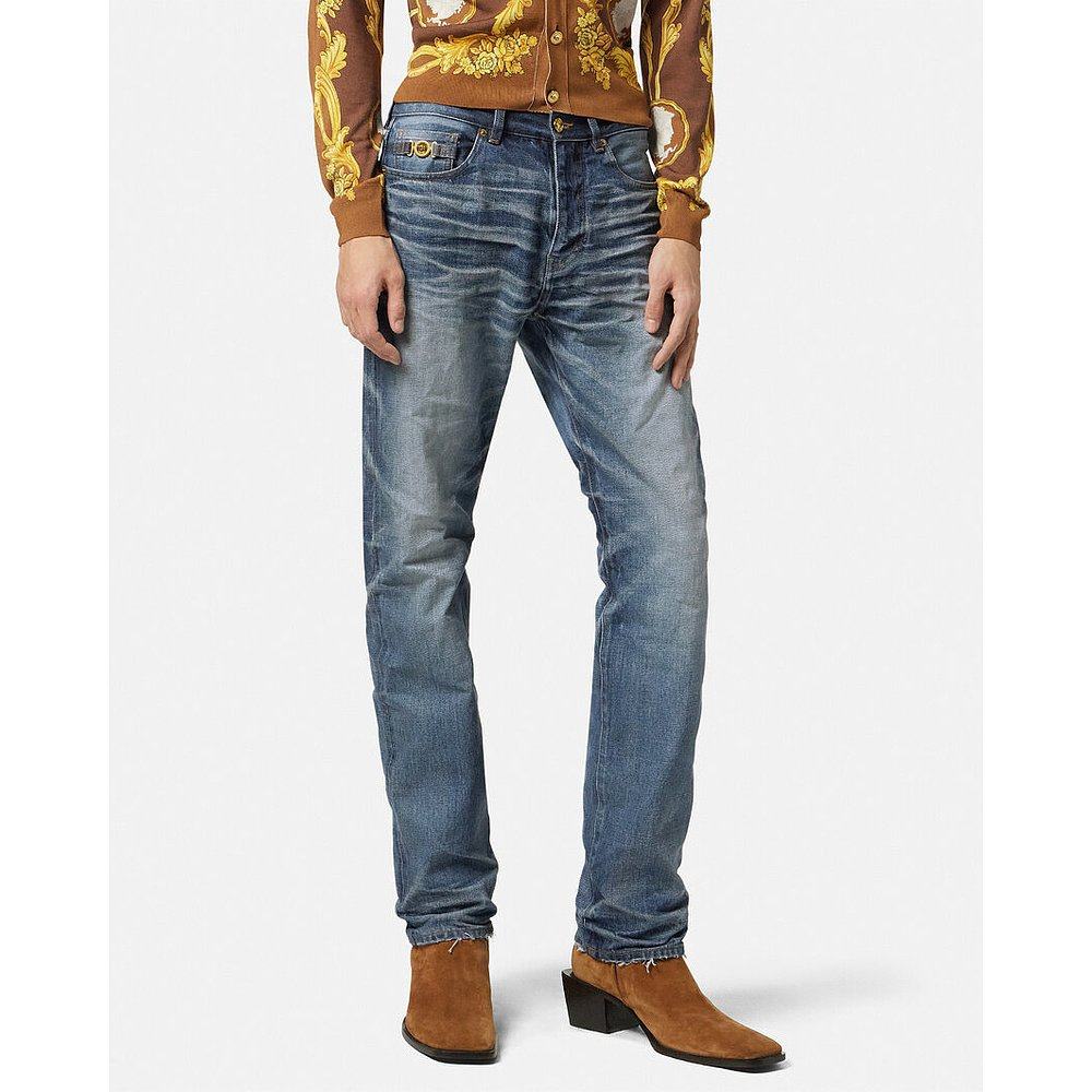 1h可退 香港直邮潮奢 Versace 范思哲 男士 腰带环牛仔裤 1019462