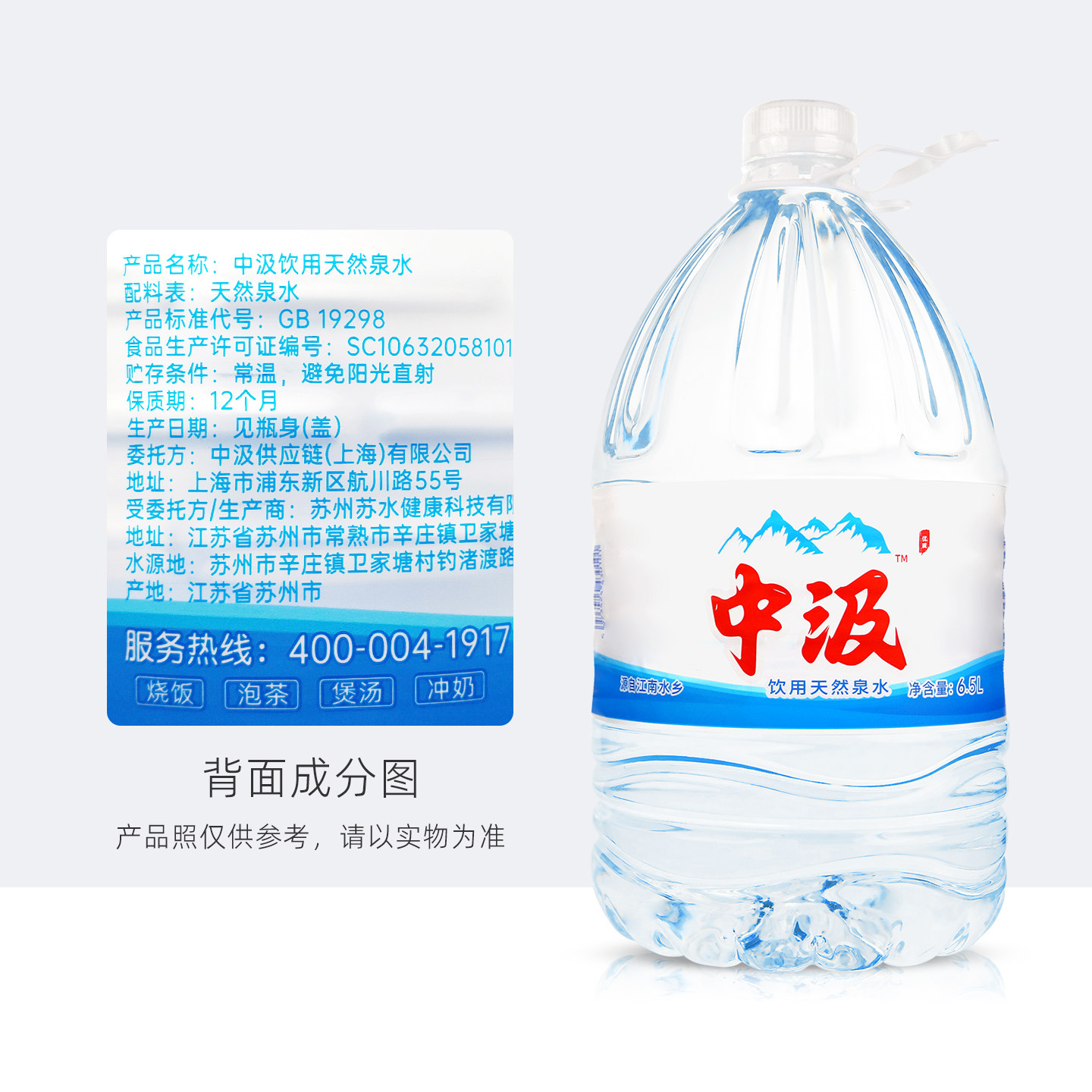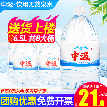 中汲桶装水6.5L*4桶*2箱特价家庭大瓶聪明盖饮用天然泉水非矿泉水