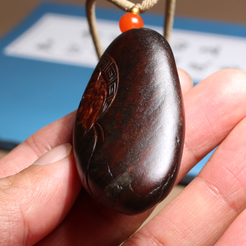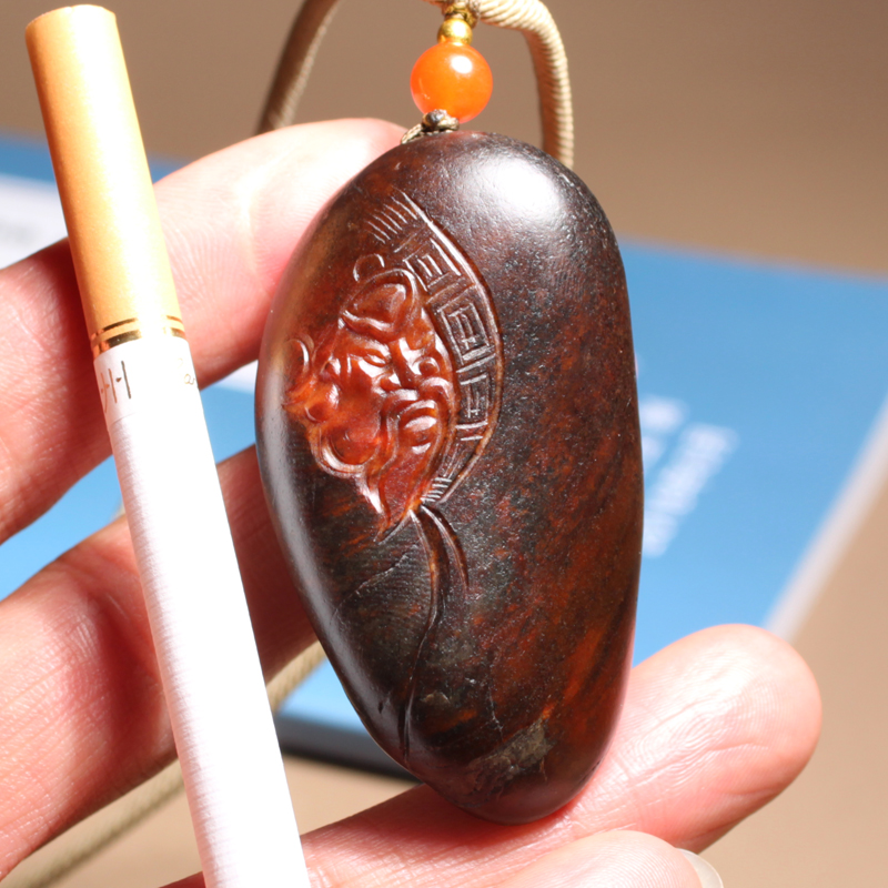 方言和田玉精品特色新疆老熟红沁皮红玉籽料巧雕关公吊坠挂件A1