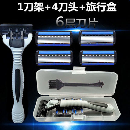 升级手动六层刀片老式手动刮胡刀片剃须刀片男士专用手动剃须刀片