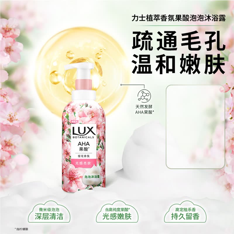 力士果酸沐浴露小苍兰樱花香泡泡浴留香提亮沐浴液净透肌肤沐浴乳