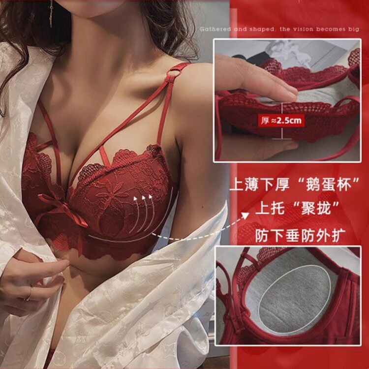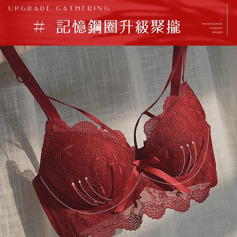 本命年红色内衣内裤女小胸聚拢20