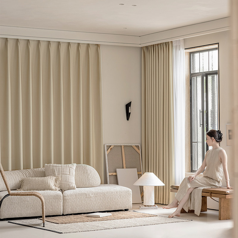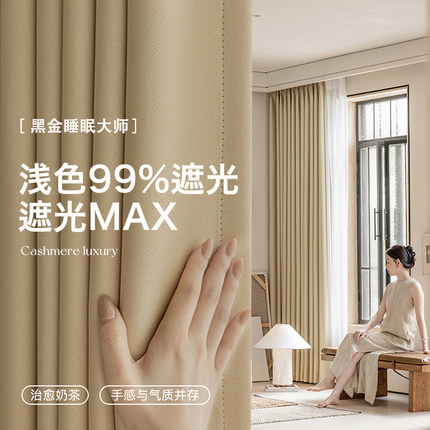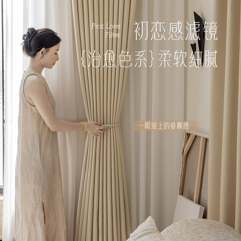 全遮光窗帘成品2025新款防晒出租房客厅卧室落地飘窗简约纯色布