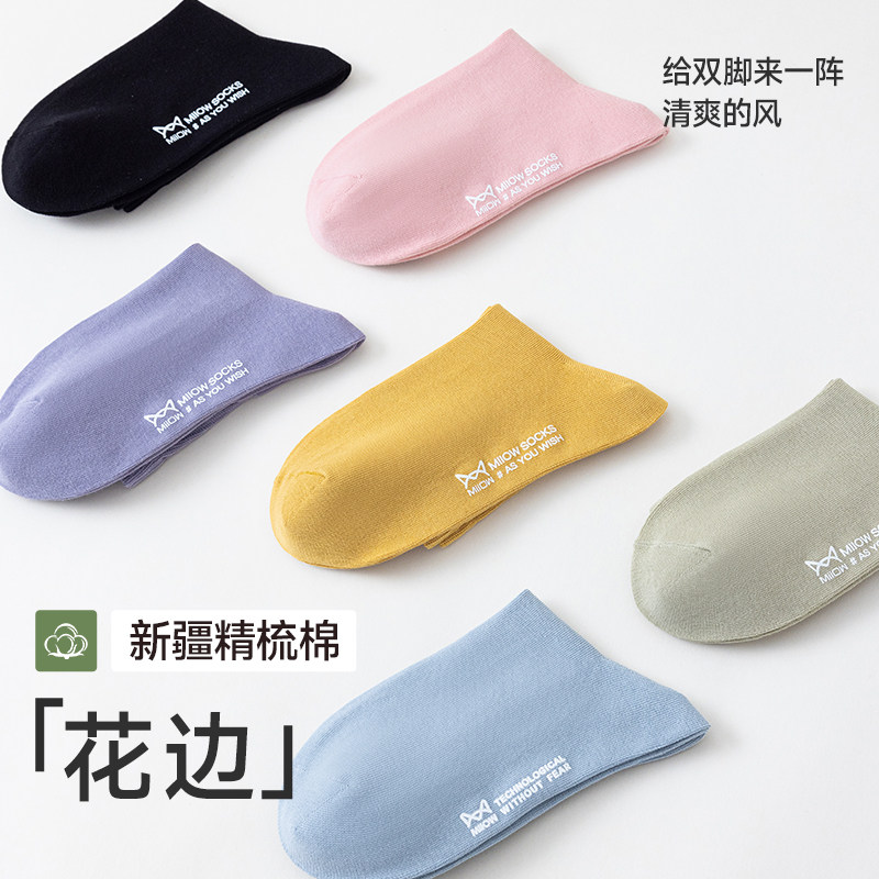 猫人袜子女士纯棉吸汗短筒袜夏季