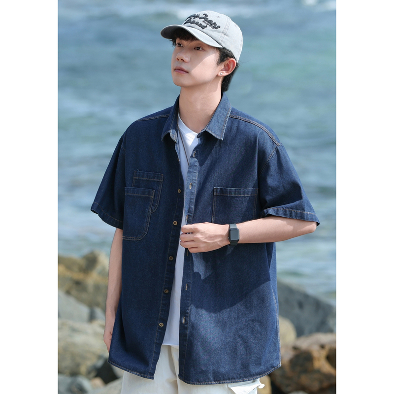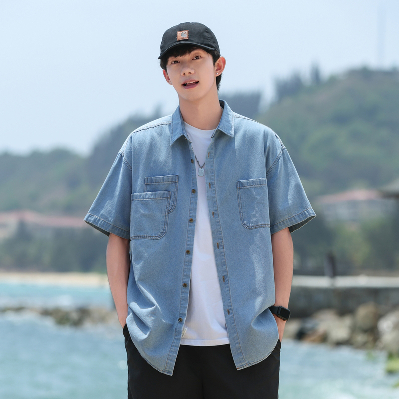 KR真维斯男装2025夏季新款 设计感口袋潮牌宽松薄款短袖衬衫上衣