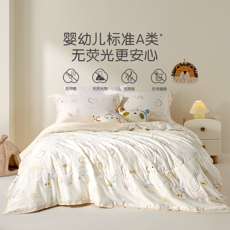 罗莱儿童A类100蚕丝被四季被全棉免被套二合一子母被夏凉空调被芯