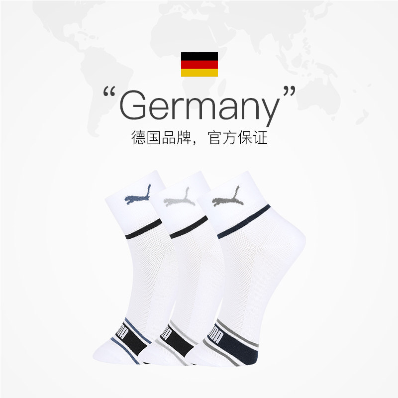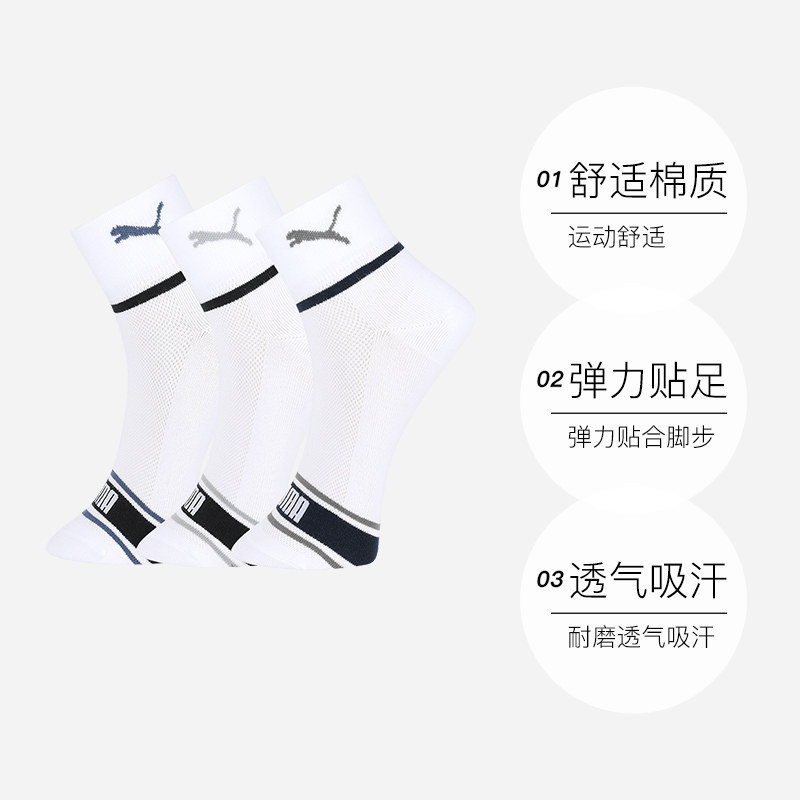【自营】PUMA彪马男士袜子时尚百搭透气耐磨运动休闲中筒袜3双装