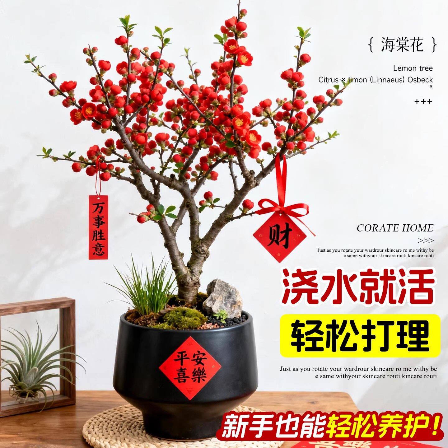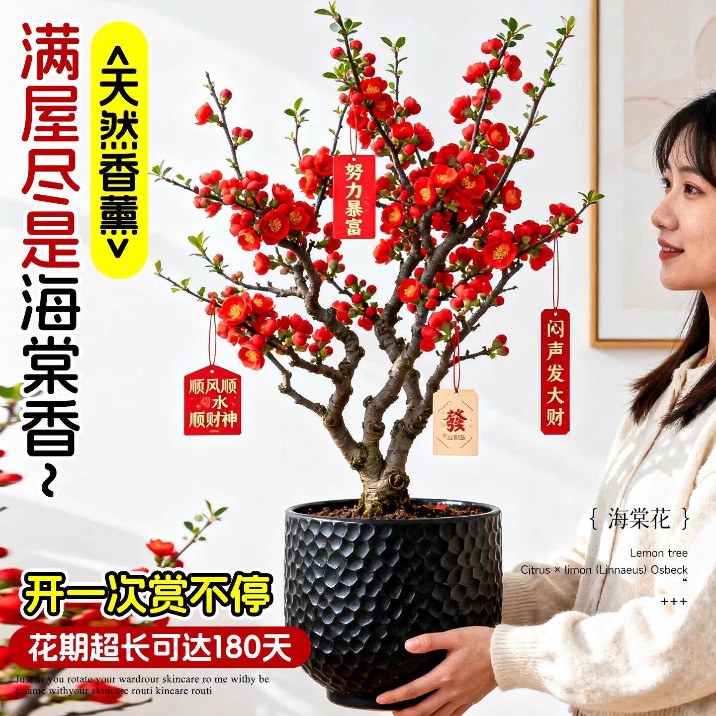 海棠盆栽带花苞长寿冠老桩树苗四季耐寒好养重瓣花卉室内阳台植物