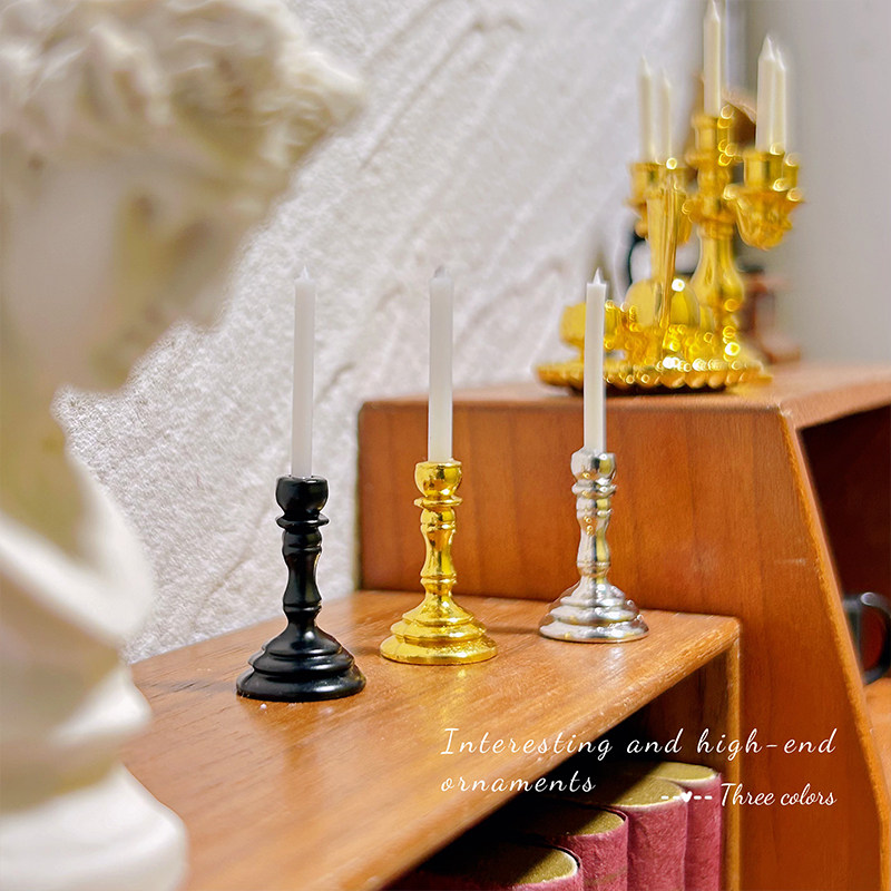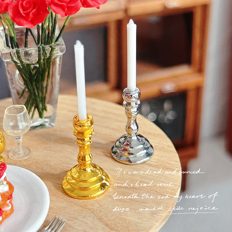 娃娃屋配件仿真蜡烛台摆件模型ob11玩具迷你金/银色烛台摆设F125