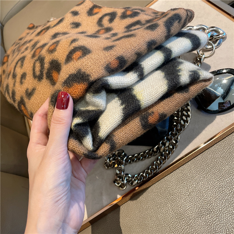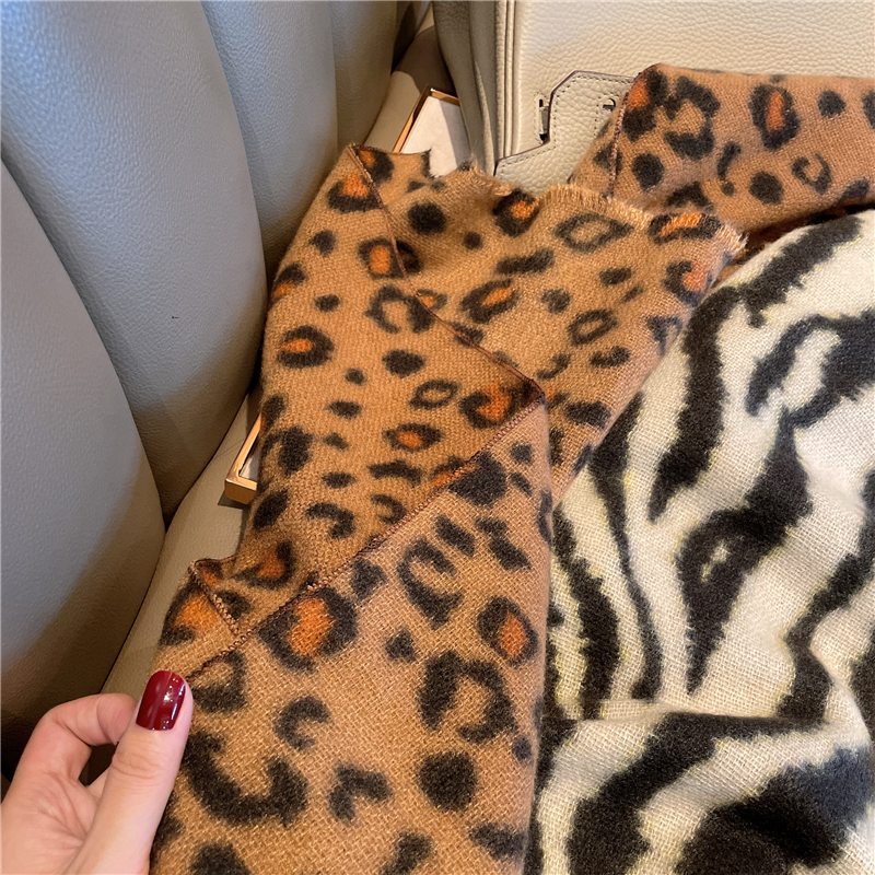 豹纹围巾女秋冬季韩版百搭双面仿羊绒加厚保暖围脖长款两用大披肩