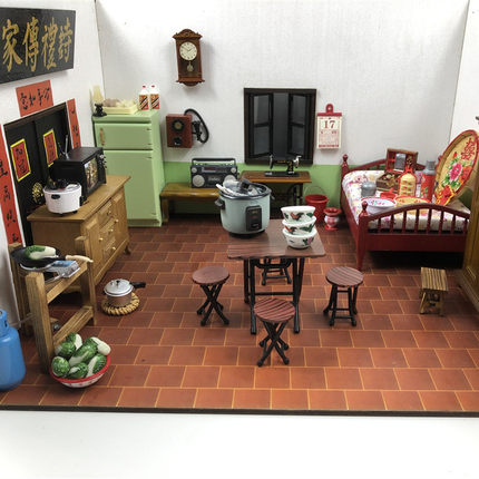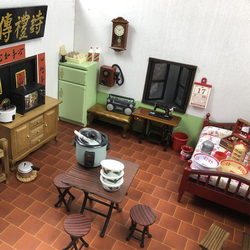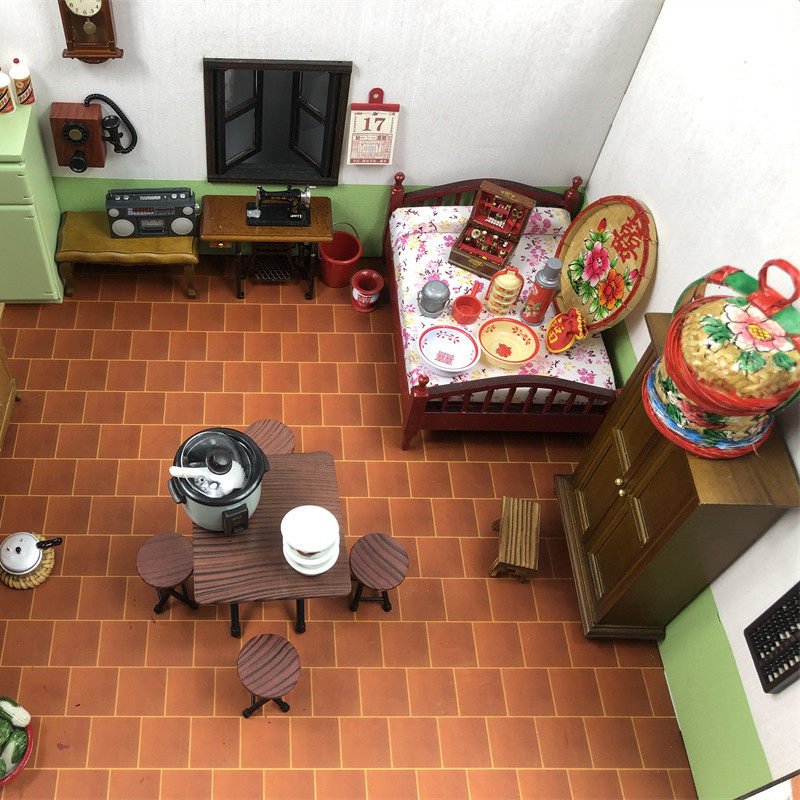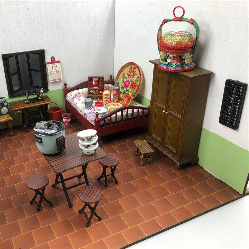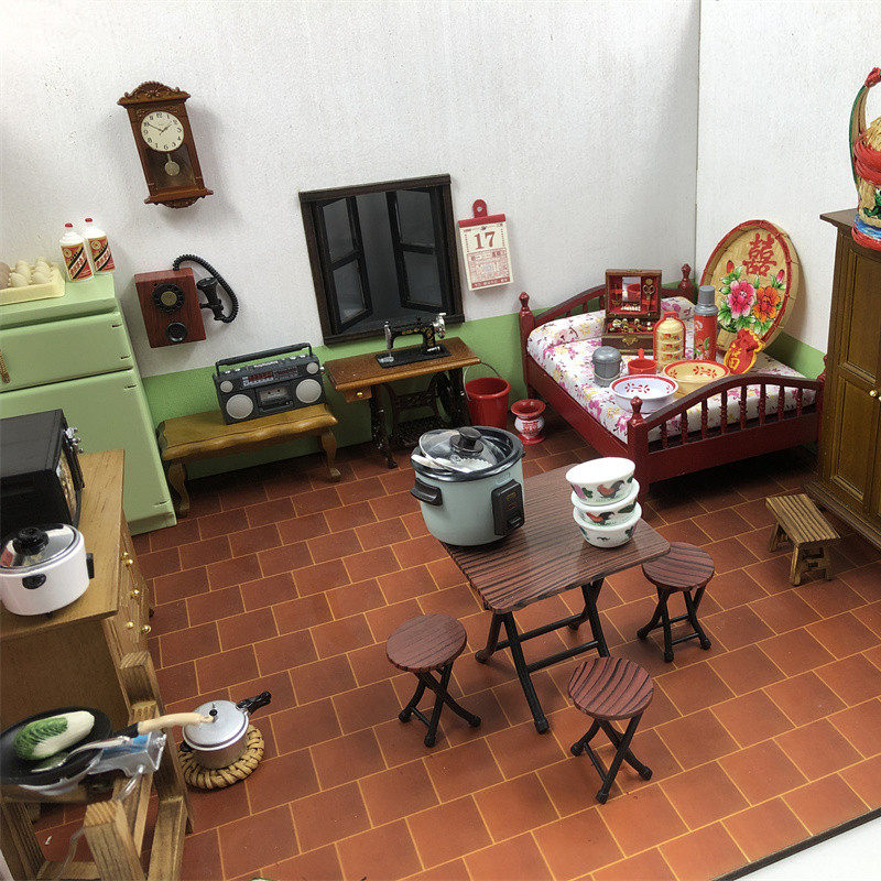 娃娃屋摆件衣柜橱柜木质家具道具迷你家居摆件仿真桌椅复古八零后