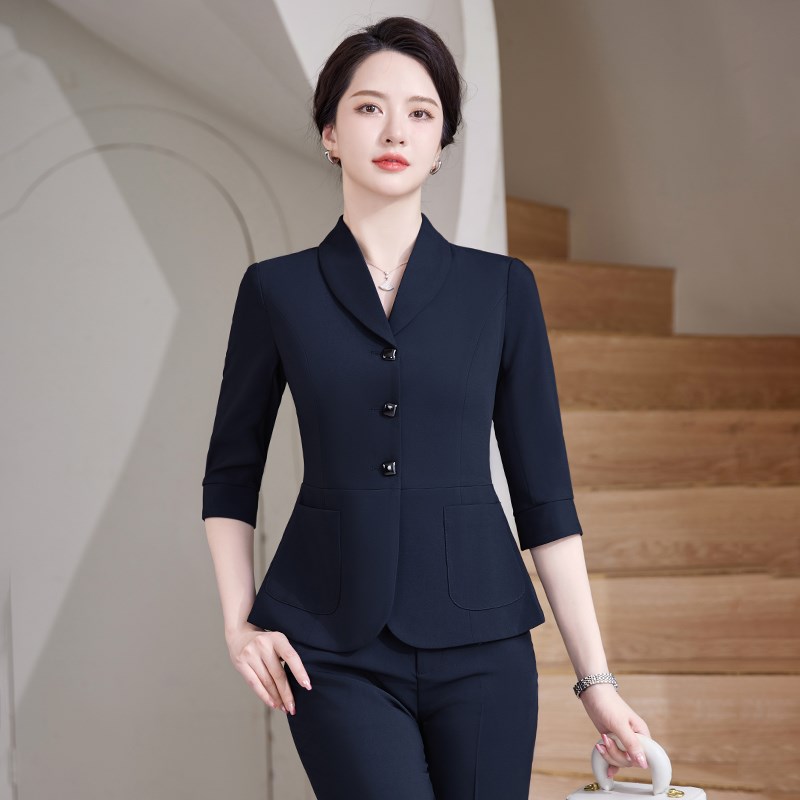 中袖小西装职业套装女时尚前台接待工作服夏季三粒扣西服面试正装
