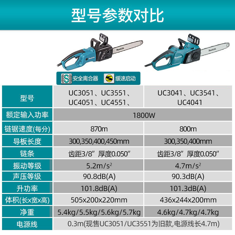 日本牧田电链锯UC4551链条电锯伐木锯4051手持大功率16寸家用220V