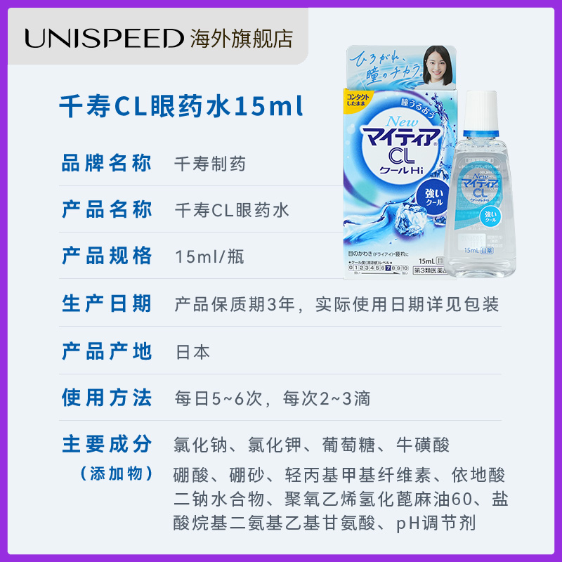 日本千寿滴眼液缓解视疲劳眼睛干涩温和滋润清凉人工泪液眼药水