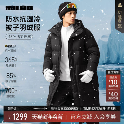 【拒水羽绒/高充绒加厚】利郎羽绒服男长款连帽2025冬款外套男装