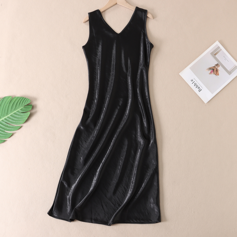 圆领~V领双面穿夏典雅气质显瘦修身光泽感醋酸缎背心连衣长裙B872