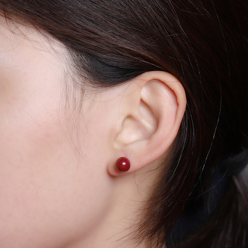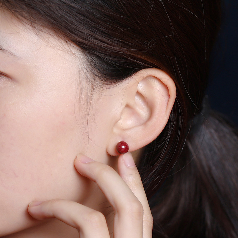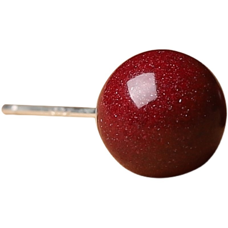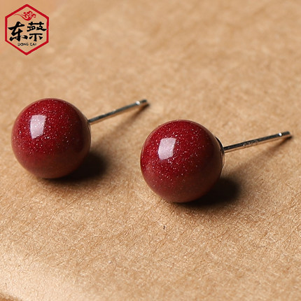 紫金砂朱砂散珠素圈s925纯银耳钉女妈妈款耳饰感红色耳环复古饰品