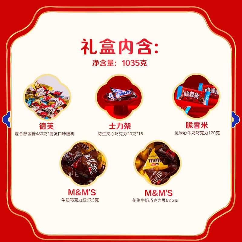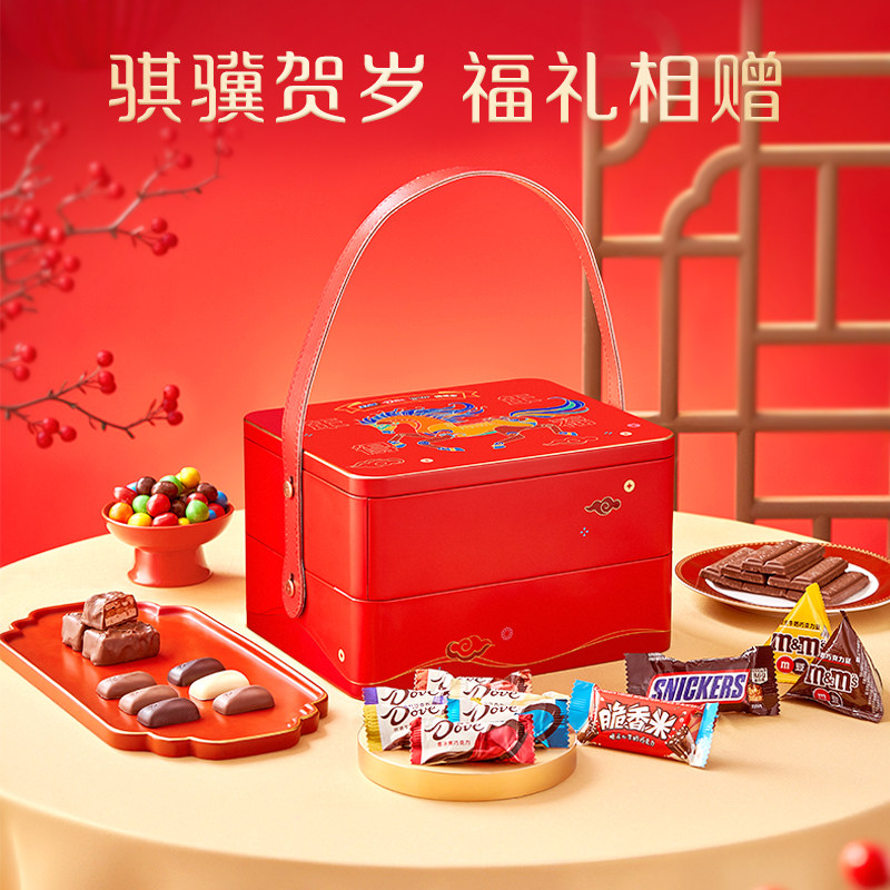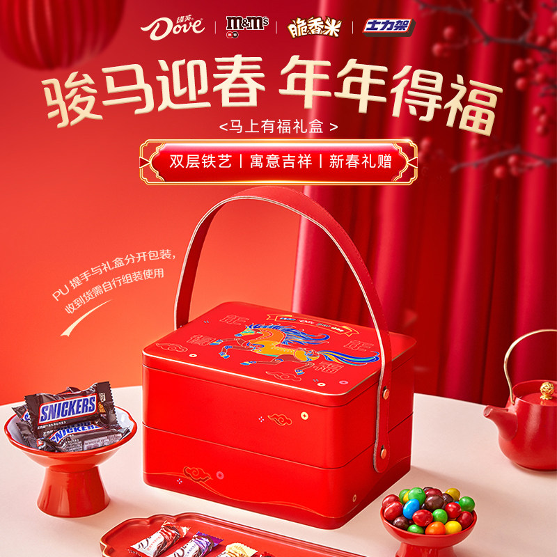 德芙马年双层年货礼盒1035g巧克力m豆士力架零食小吃礼盒送礼