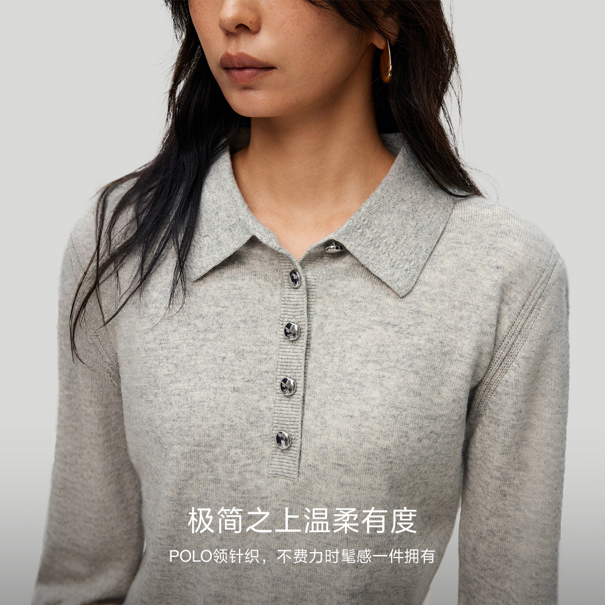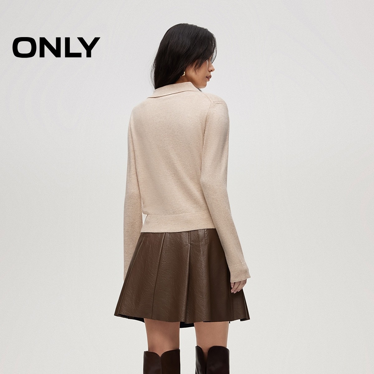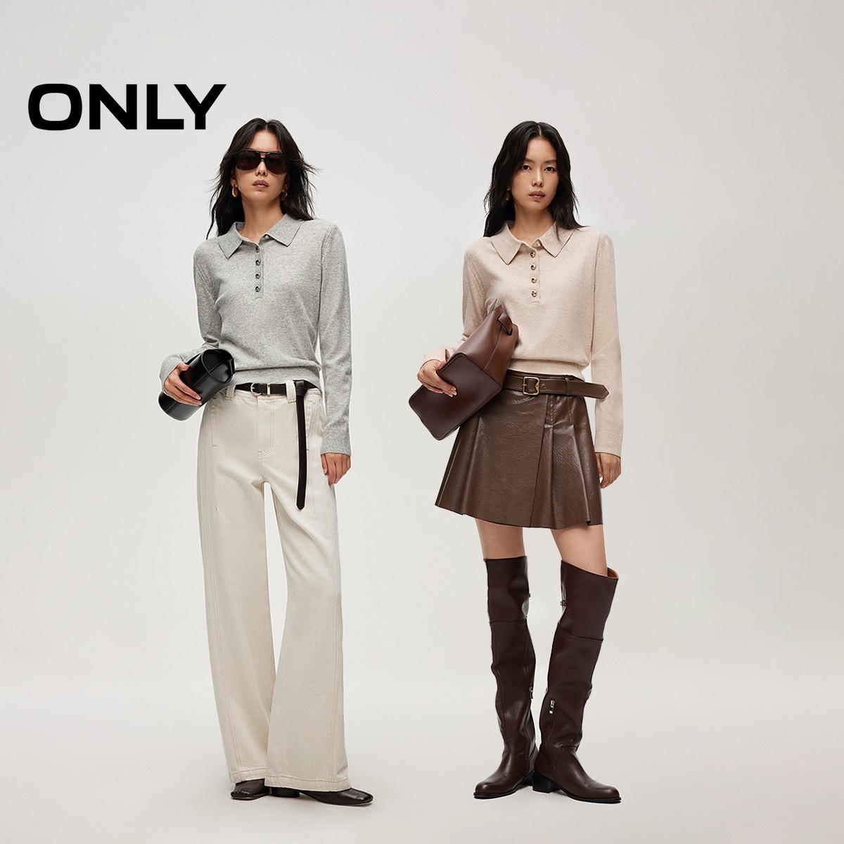 ONLY2026春季新款简约气质正肩含绵羊毛polo领金属扣毛衣针织衫女