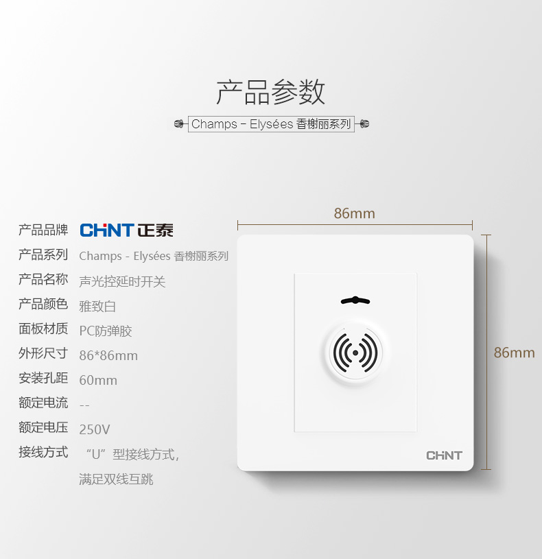 正泰开关插座86型弱电墙壁智能红外线感应开关调音调速延时开关2L
