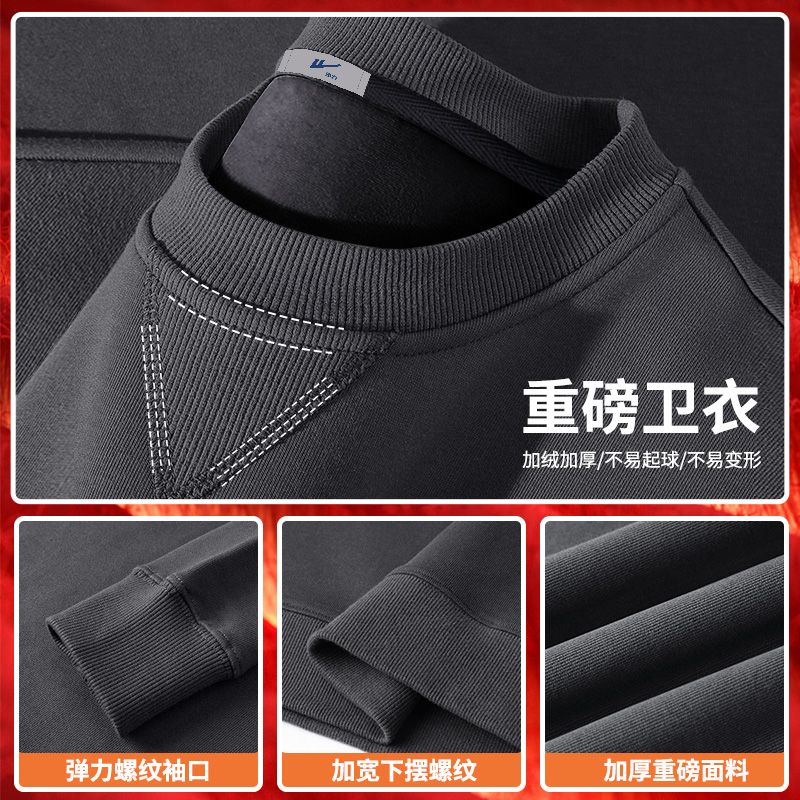 回力灰色大码潮牌男士圆领卫衣秋冬季加绒保暖ins高级感大码上衣