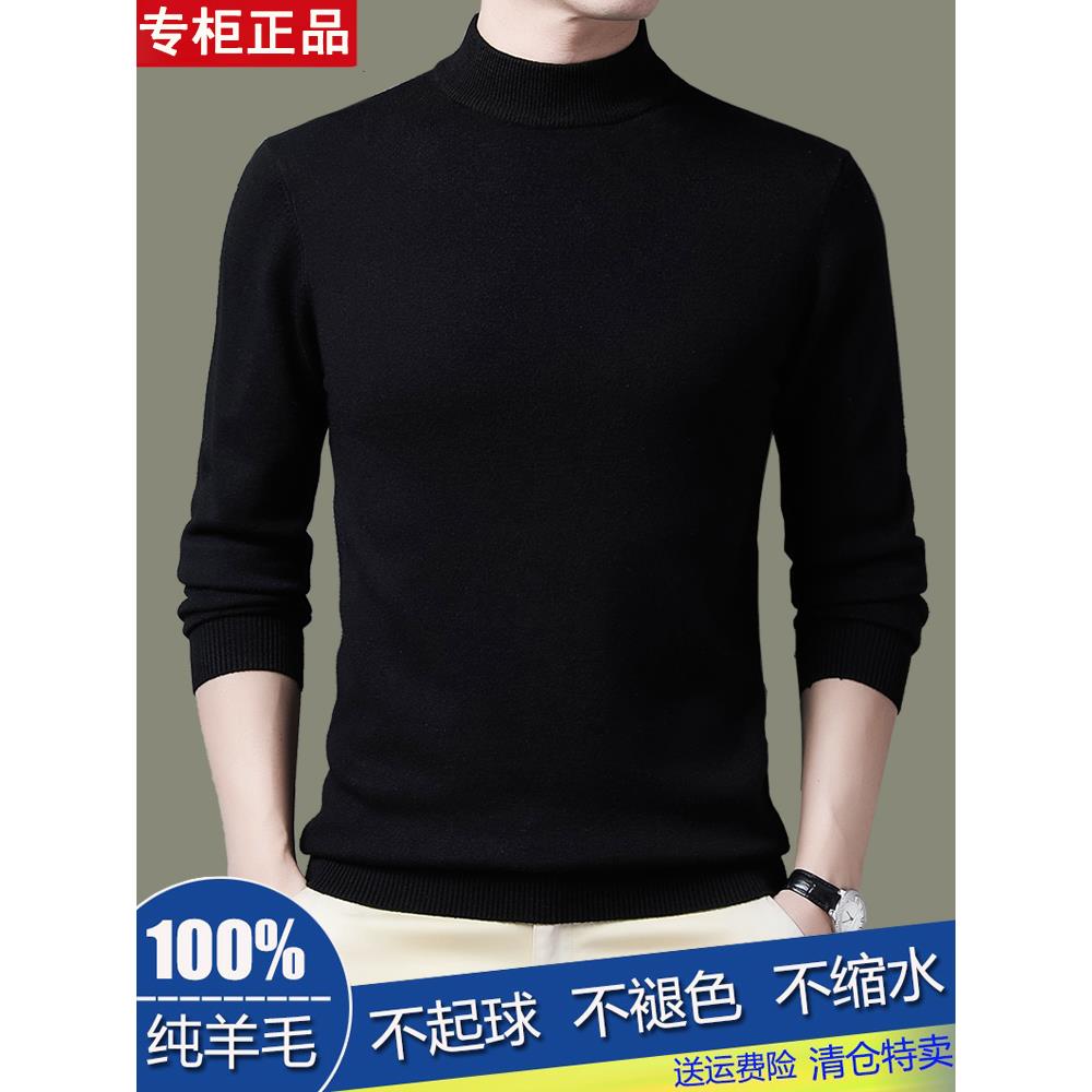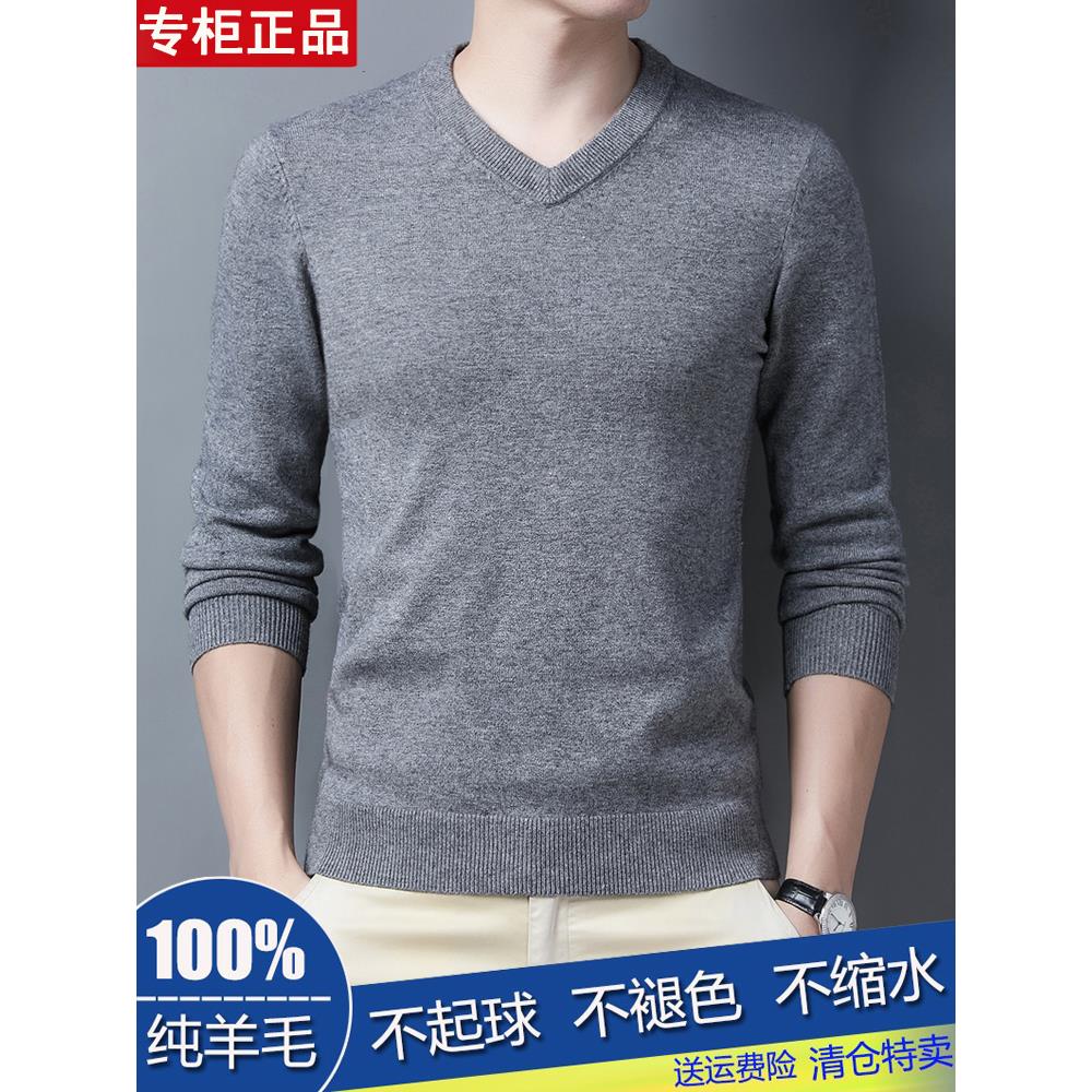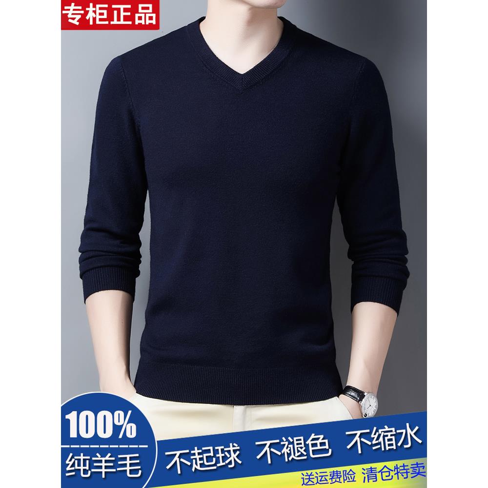 鄂尔多斯市100纯羊毛衫男秋冬V领加厚毛衣鸡心领针织羊绒打底衫潮