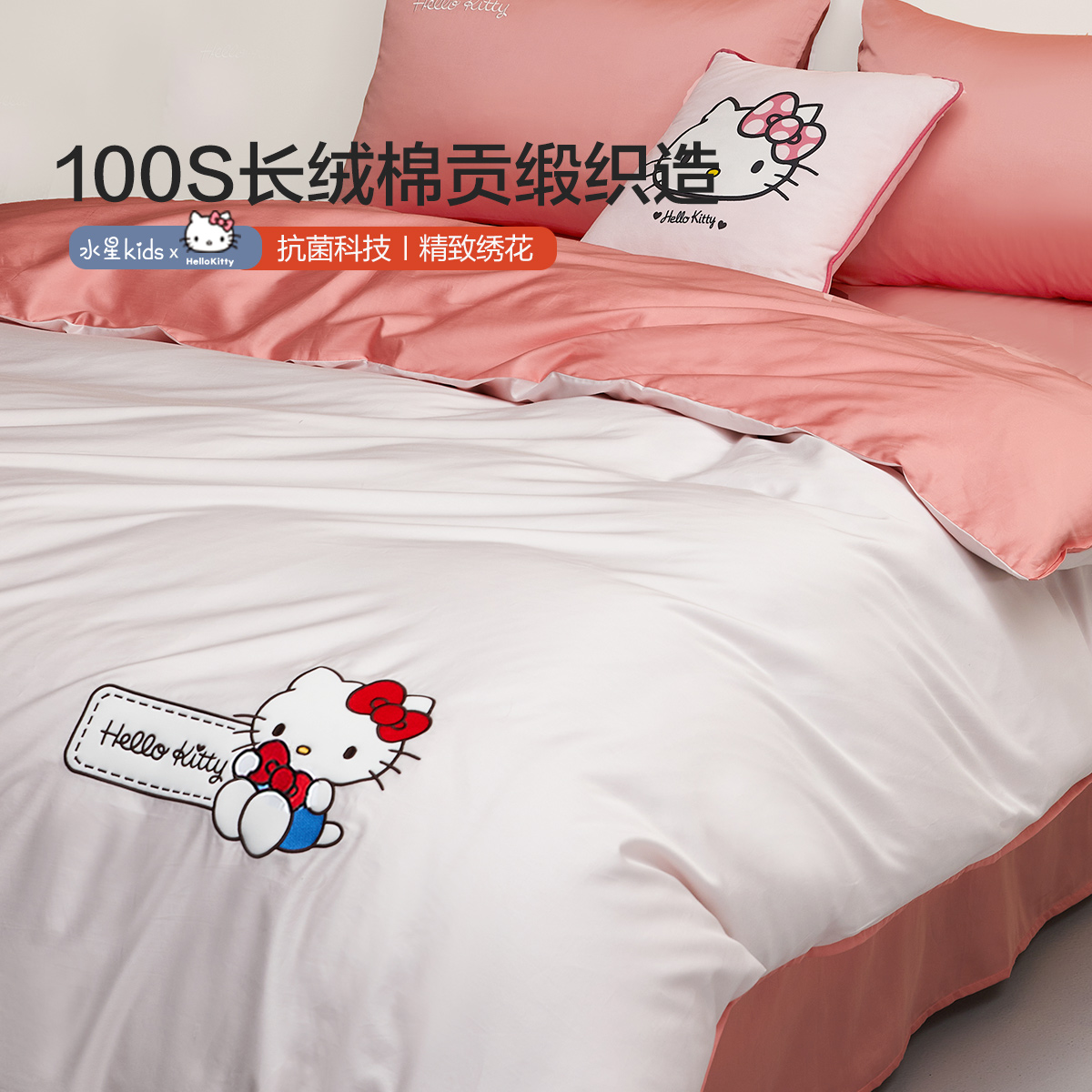 水星家纺100支长绒棉A类抗菌三/四件套儿童套件床单床笠被套床品