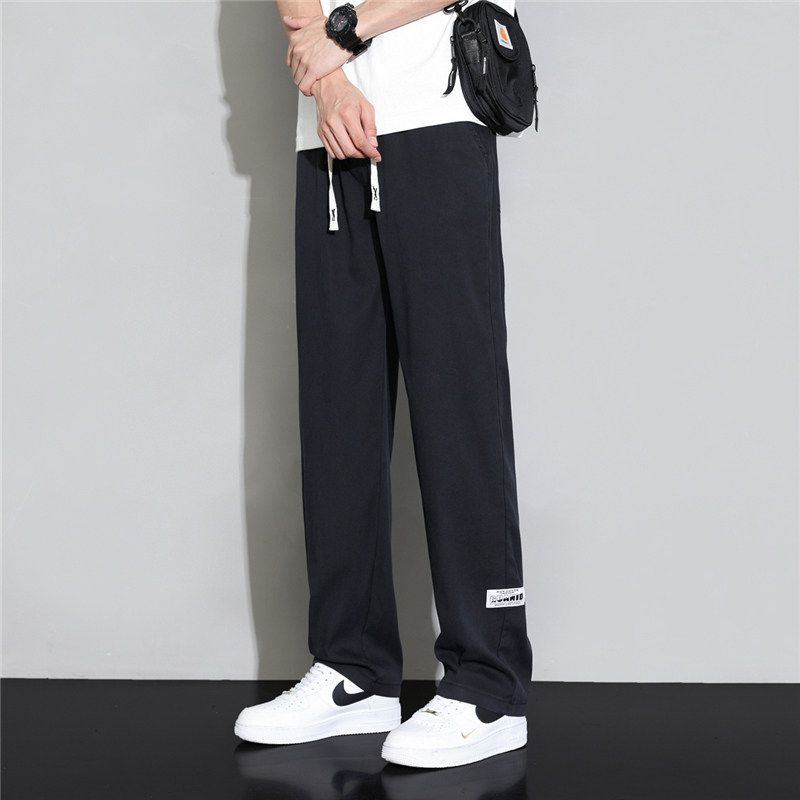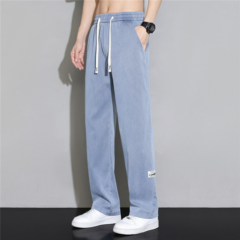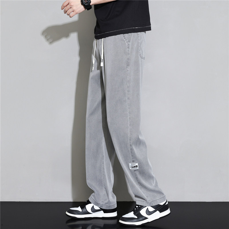 夏季冰丝牛仔裤男宽松超薄款莱赛尔直筒垂感系带工地工作耐磨裤子