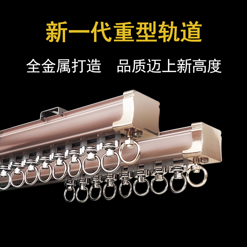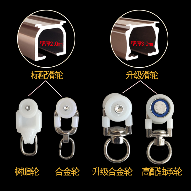 特厚铝合金窗帘轨道滑道窗帘杆重型直轨送轴承轮配件静音单轨双轨