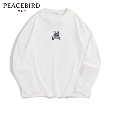 太平鸟男装休闲印花长袖T恤青年时尚圆领打底衫宽松上衣